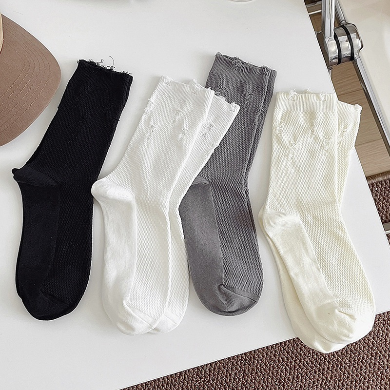网眼破洞中筒袜子男女潮网红薄款棉袜日系堆堆乞丐风洞洞袜