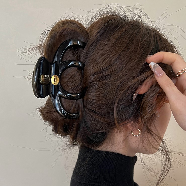早春新款黑色大号抓夹女高级感后脑勺发夹小众气质高端鲨鱼夹头饰