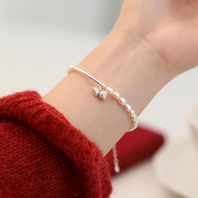 竹节莲蓬花朵手链女高级感气质珍珠S925银手环ins小众百搭手饰潮