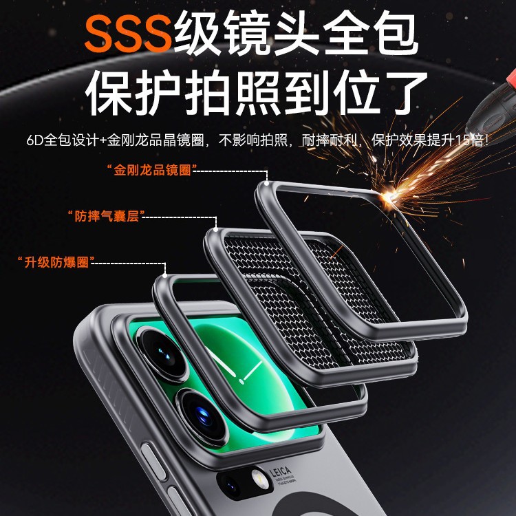 新款适用小米17系列肤感手机壳吸磁轻砂tpu+pc二合一磁吸保护套