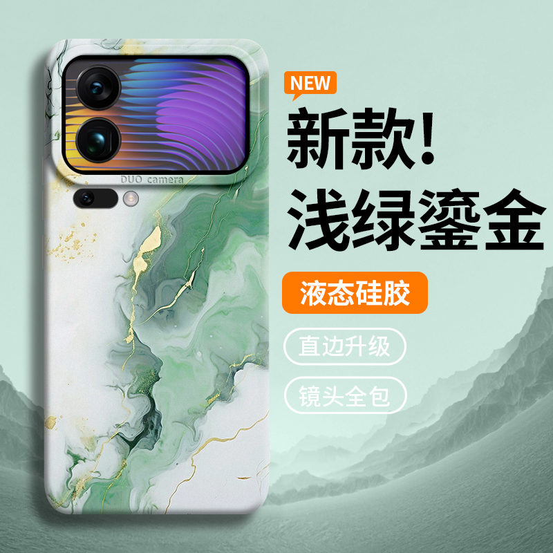 - 【浅绿鎏金水彩】淡青色⭐硅胶[A5033]