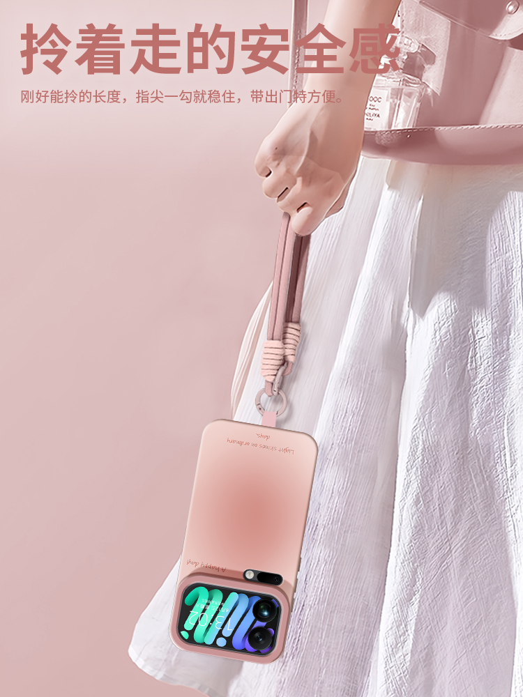 - 古董白【RL1785浅粉色+C455手提短绳】简约渐变★潮流硅胶
