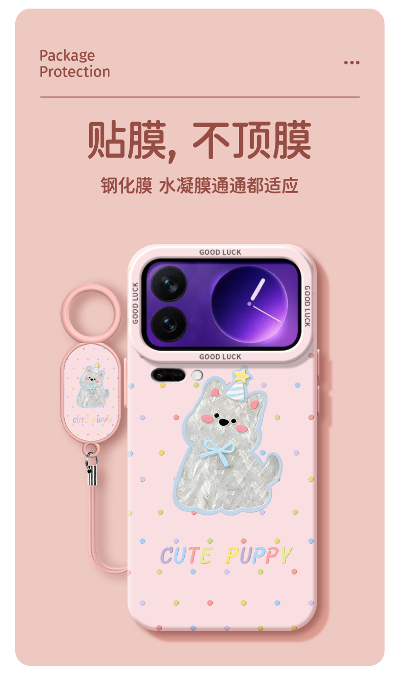 - 实色天使眼-粉色-SW53波点小狗粉-SH007