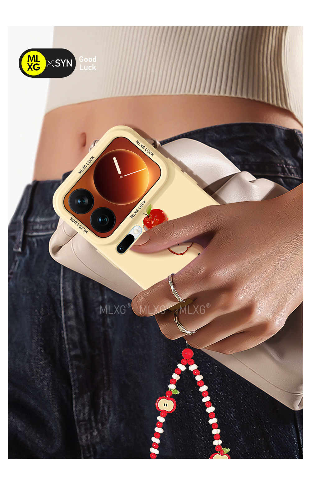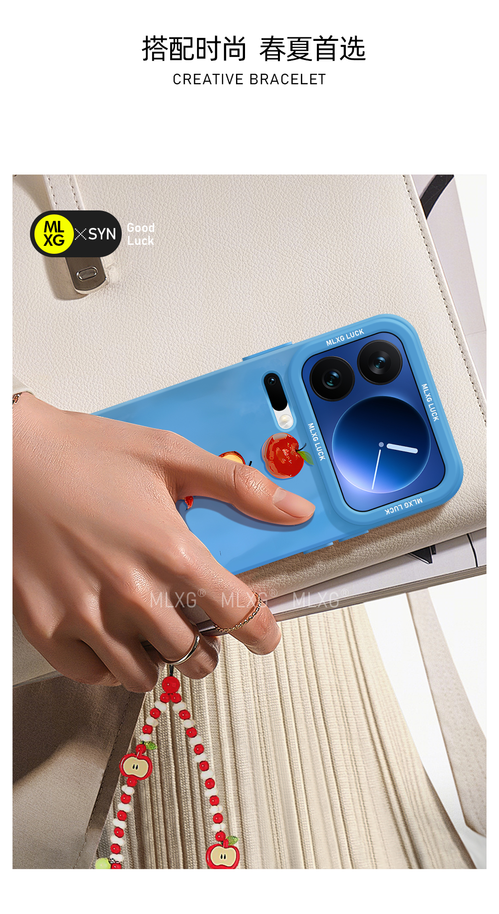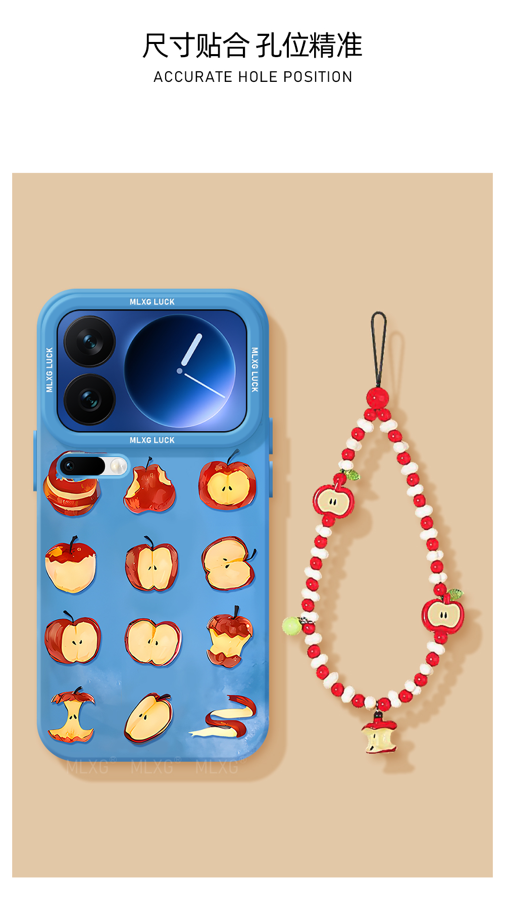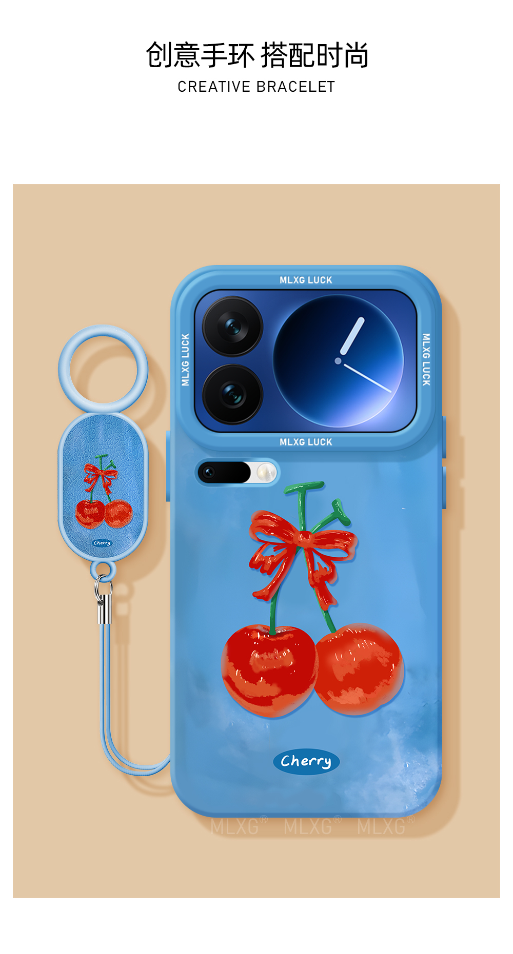 - 【樱桃蝴蝶结蓝+苹果挂绳】硅胶软壳★镜头全包