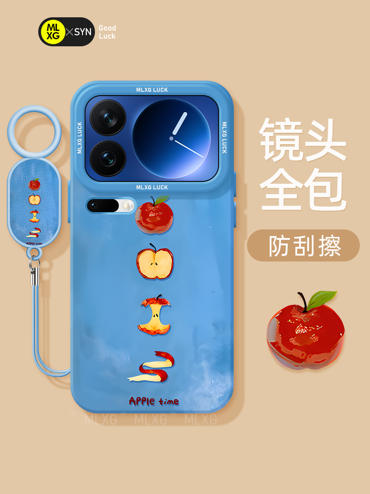 - 【一袋苹果蓝+卡通挂绳】硅胶软壳★镜头全包