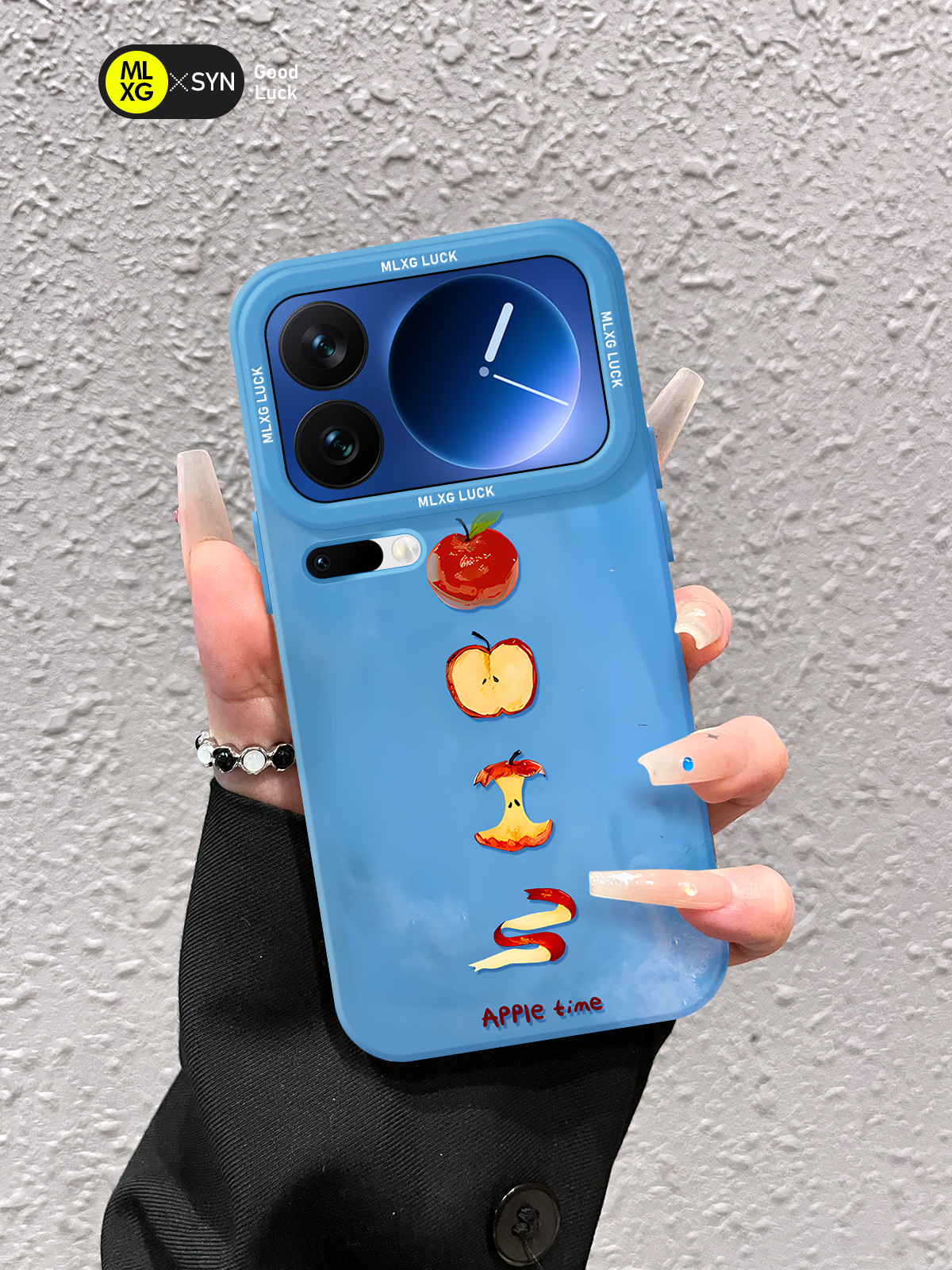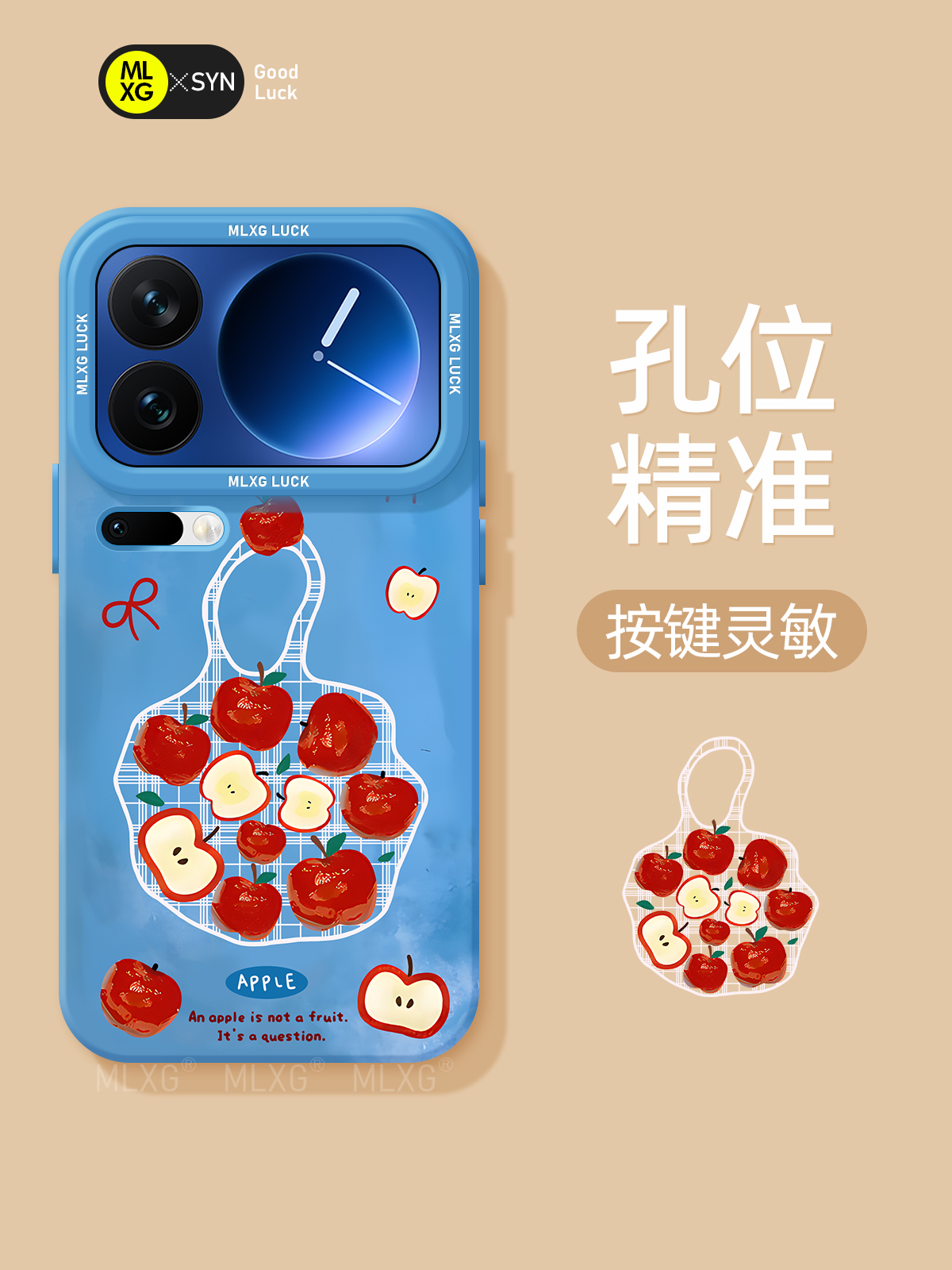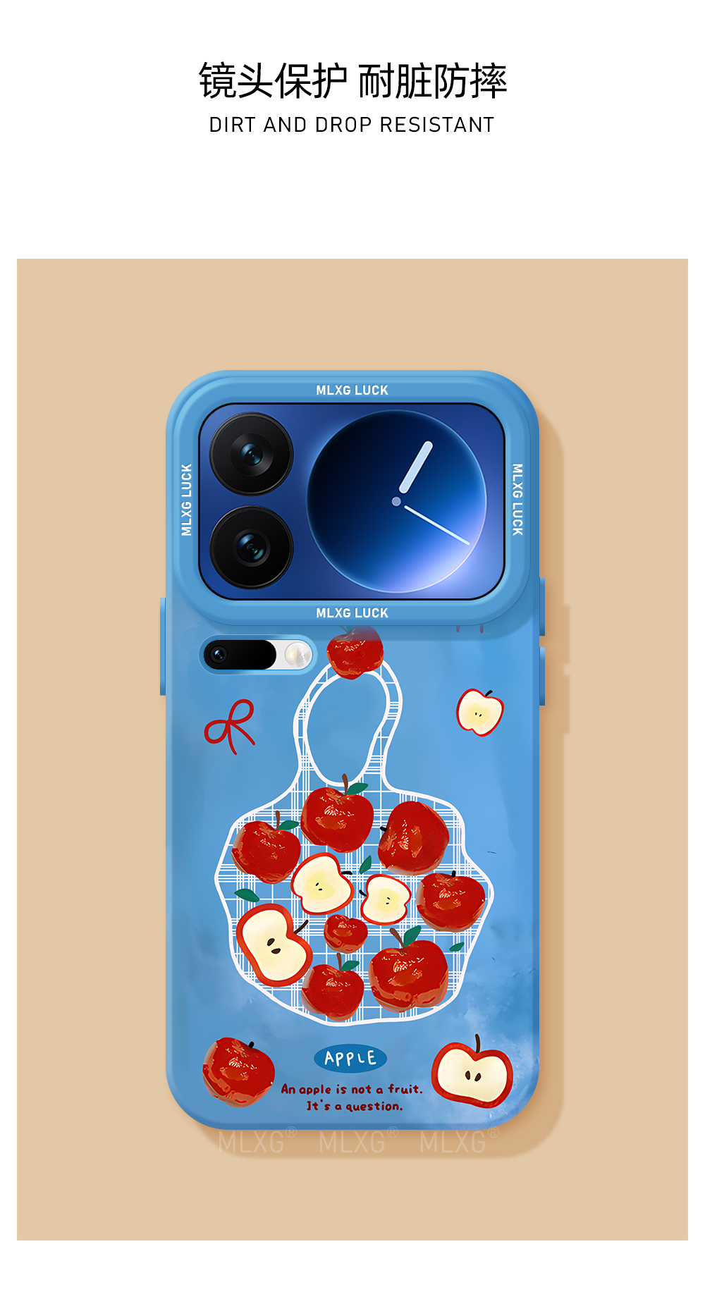 - 【完整苹果蓝+方块苹果挂绳】硅胶软壳★镜头全包