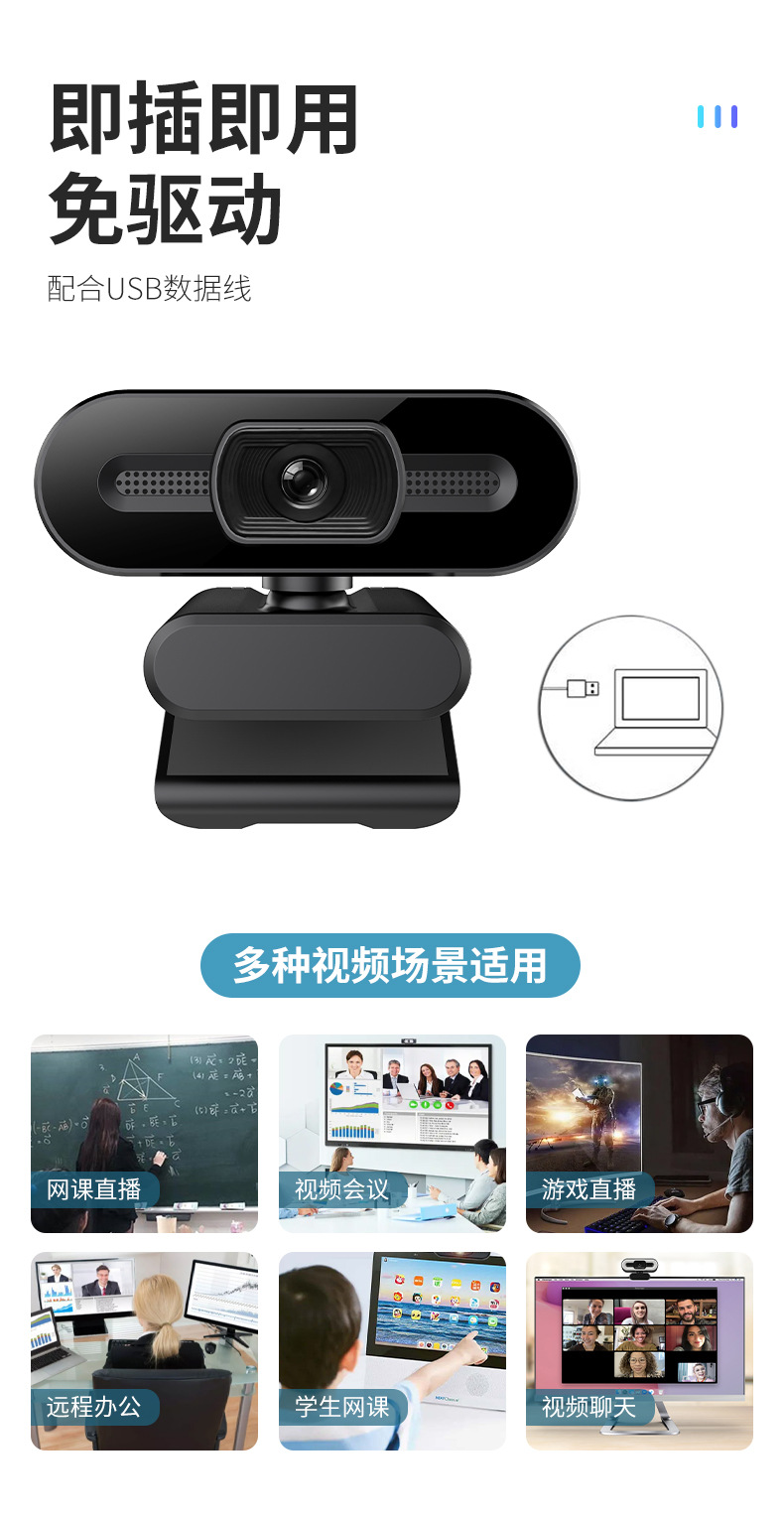 2K高清USB电脑摄像头网课直播摄影头远程会议视频美颜电脑摄像头