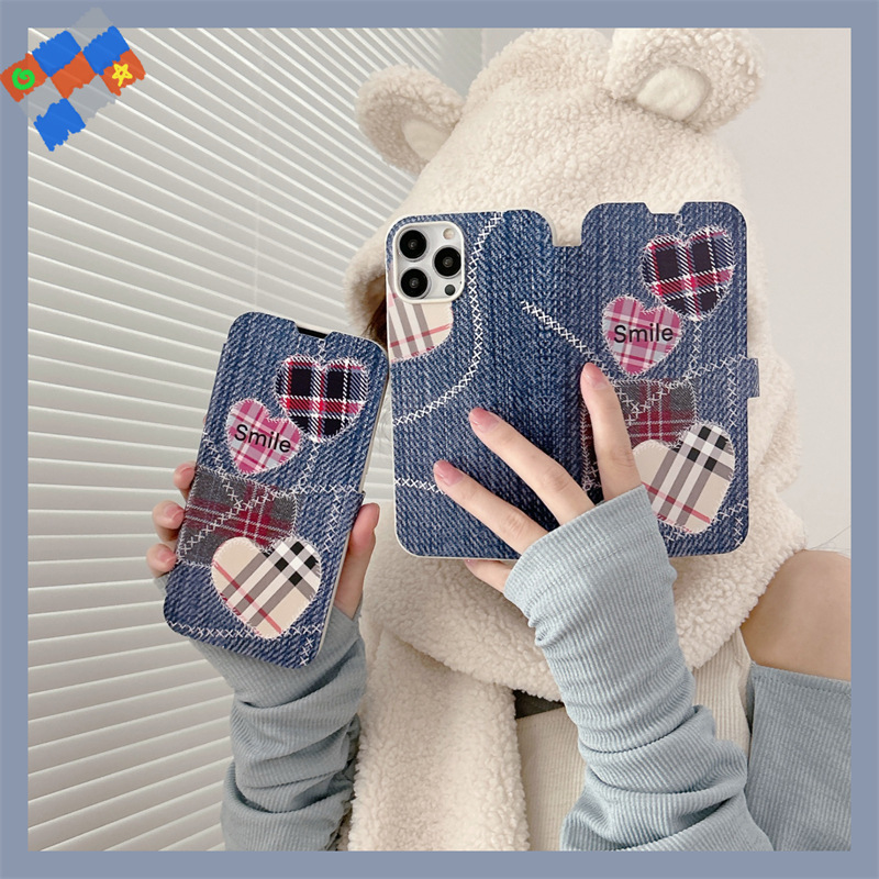 翻盖牛仔格纹爱心适用iPhone14创意12ProMax手机壳苹果13新款11女