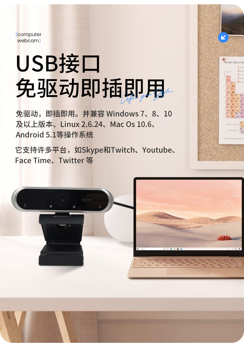 4K高清电脑摄像头上网课考研复试直播外置家用自动对焦usb摄像头