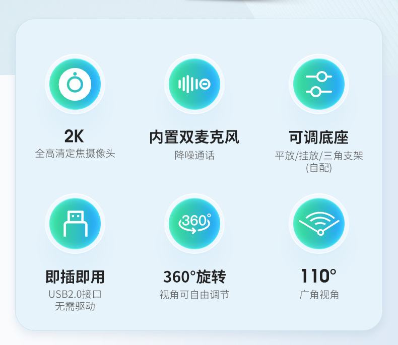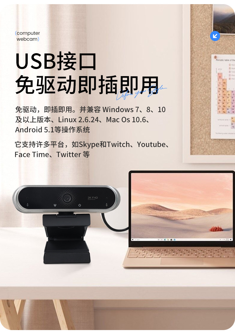 高清台式USB直播2K摄像头网络电脑双降噪麦克风webcam摄像头