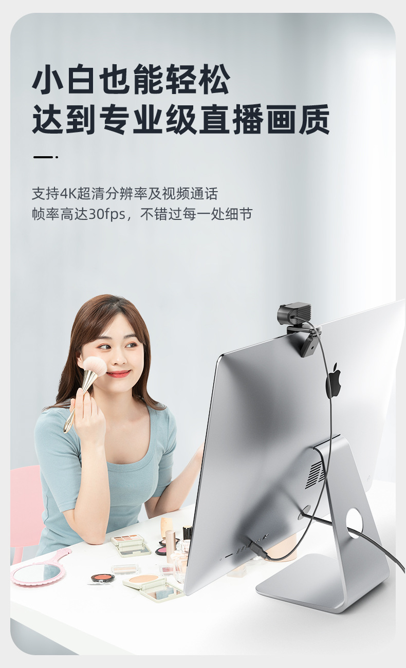 4K高清电脑摄像头免驱动家用台式机上网课直播外置笔记本摄影头