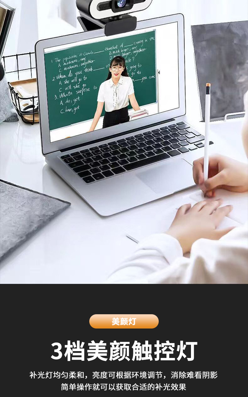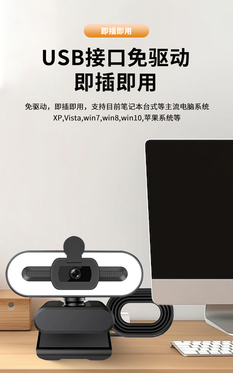 4K高清电脑摄像头免驱动带美颜补光灯上网课直播外置笔记本摄影头
