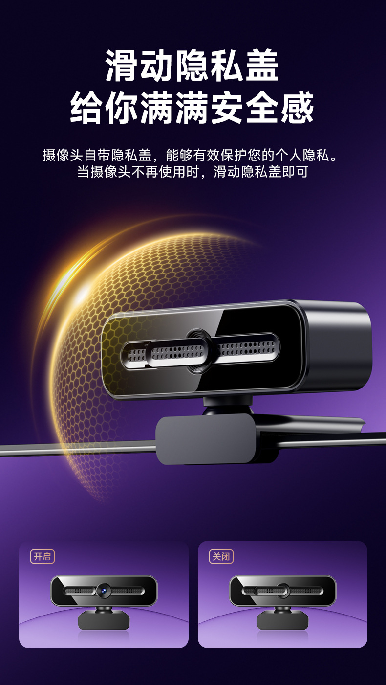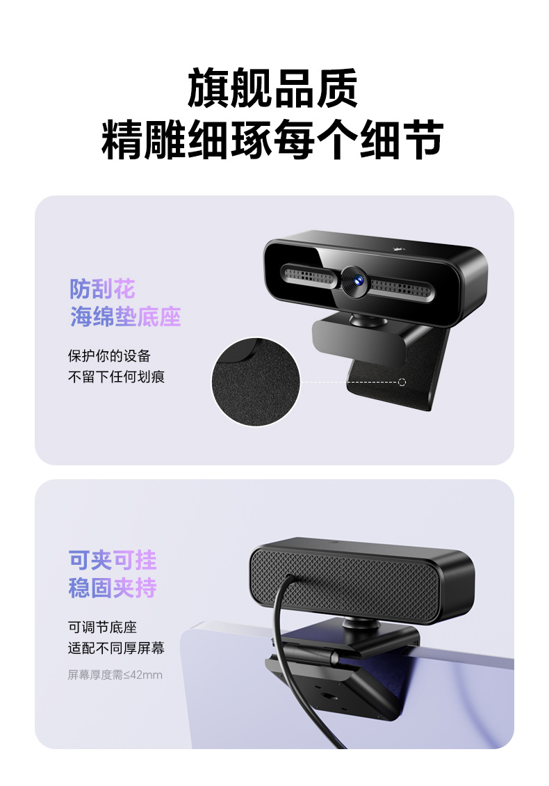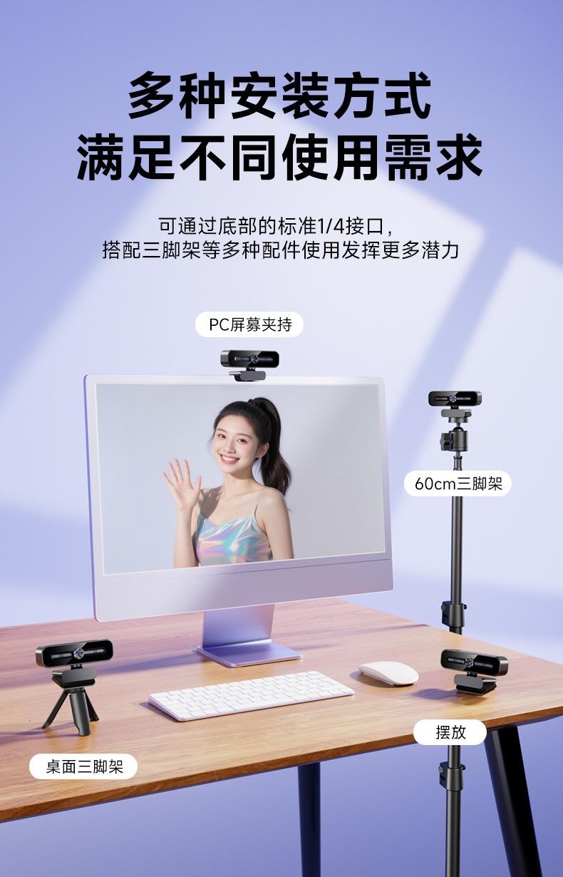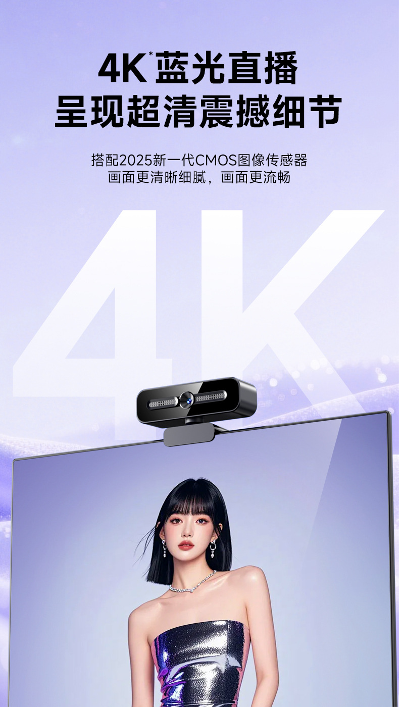 4K高清电脑摄像头免驱动带美颜补光灯上网课直播外置电脑摄影头