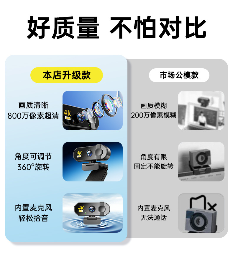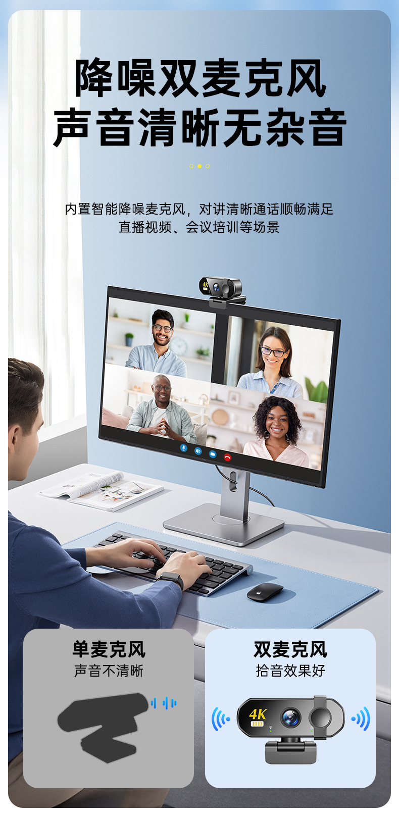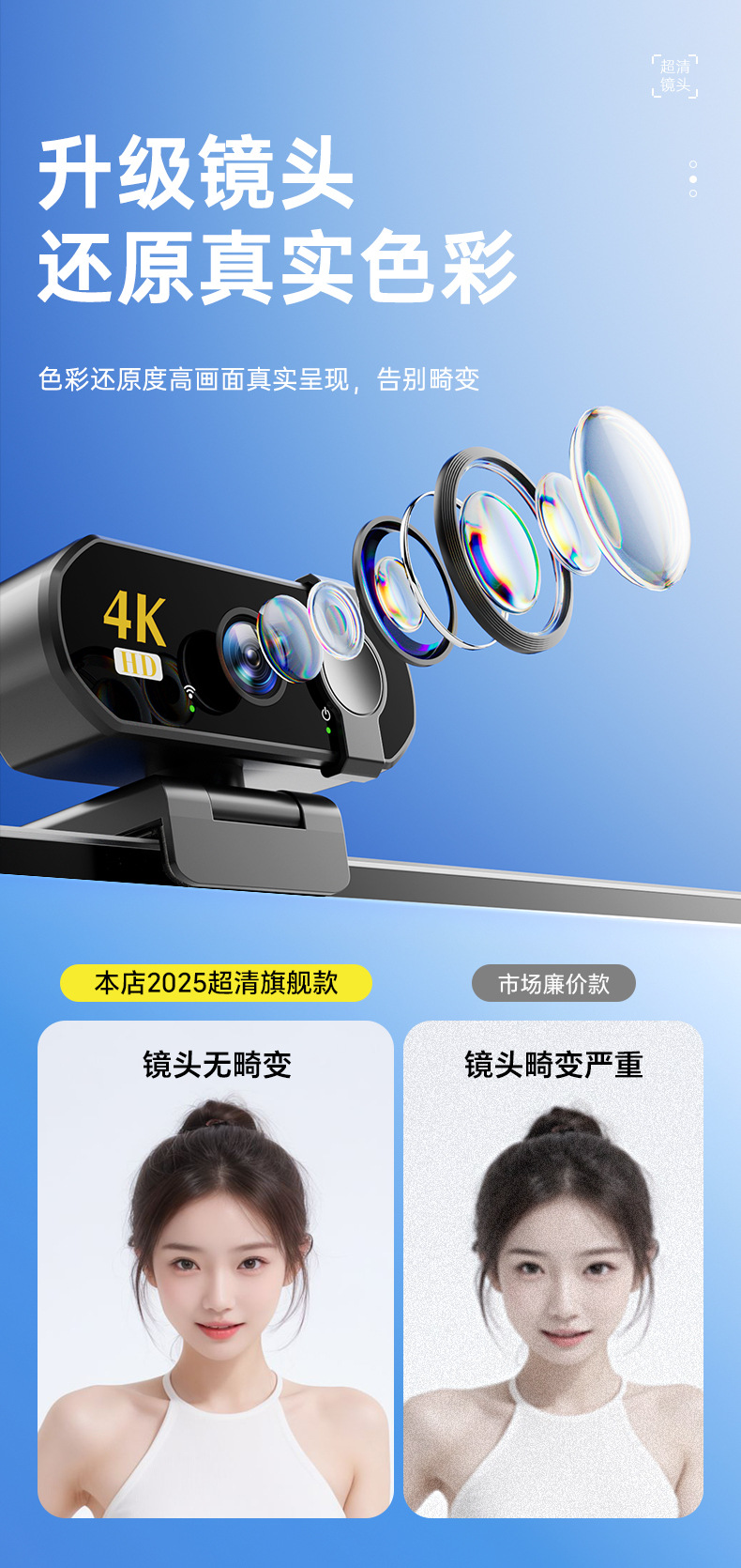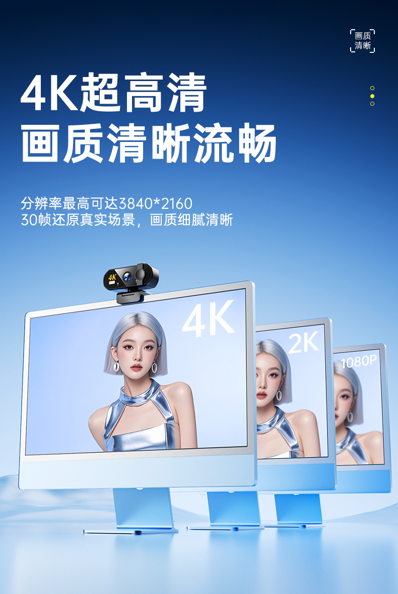 新款4K高清电脑摄像头免驱动笔记本台式通用网课直播外置摄像头