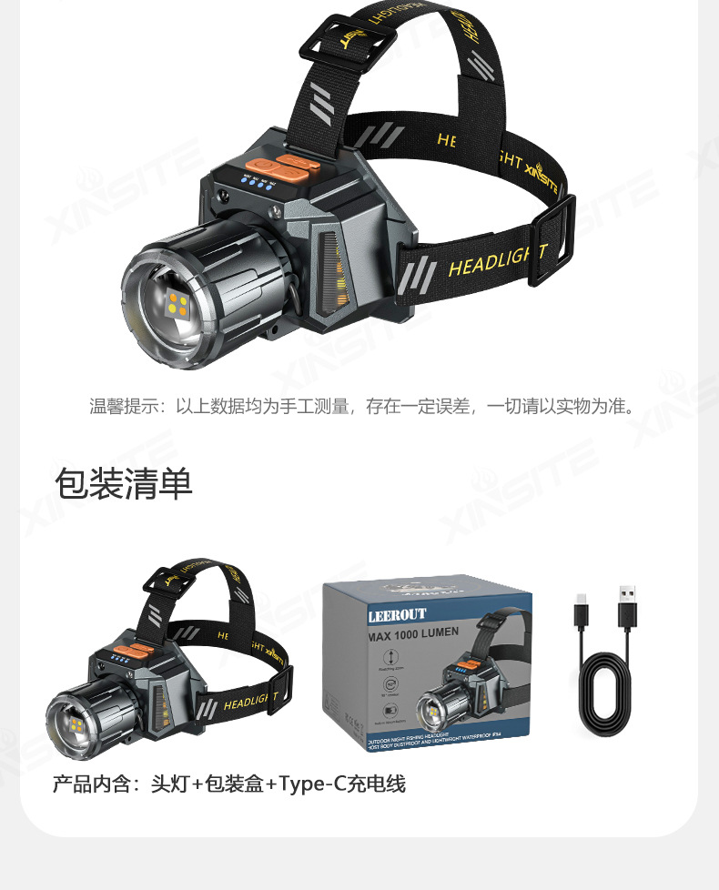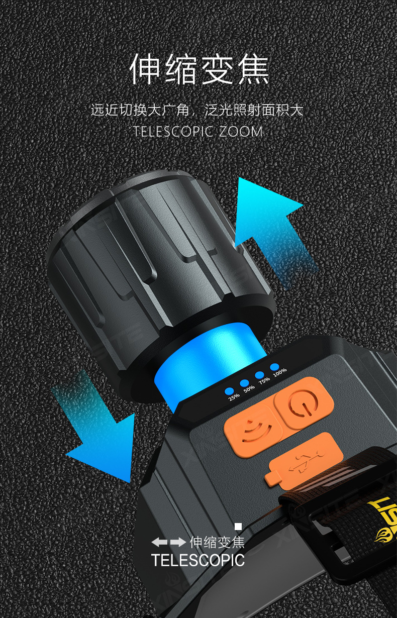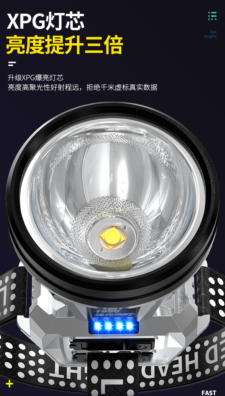 强光头灯远射可充电防水超亮头戴式夜钓灯矿灯超长续航头灯