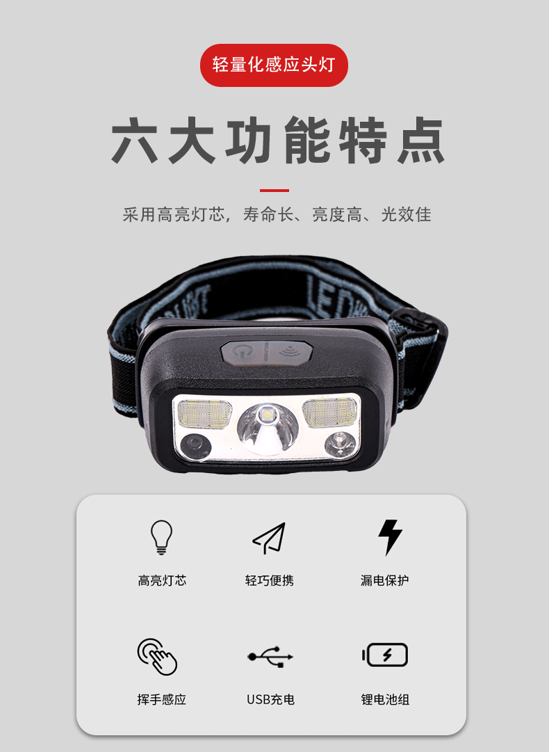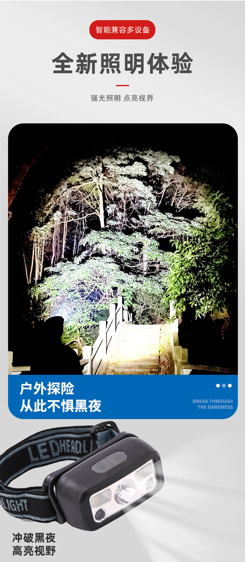 强光爆亮可充电户外头灯超亮钓鱼专用带感应超长续航头戴式手电筒