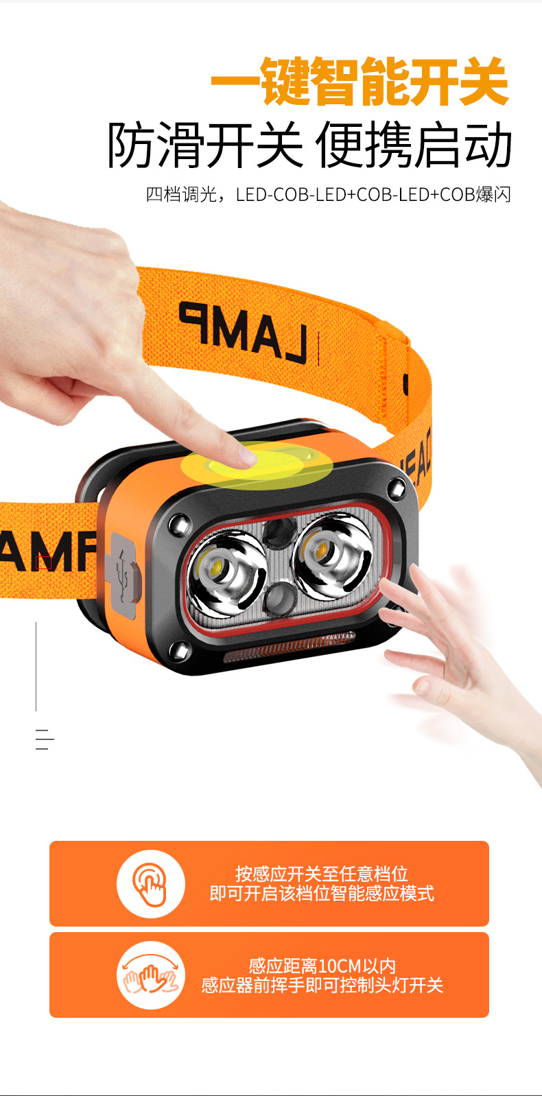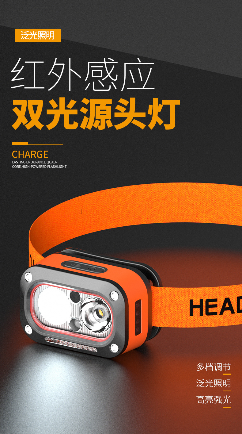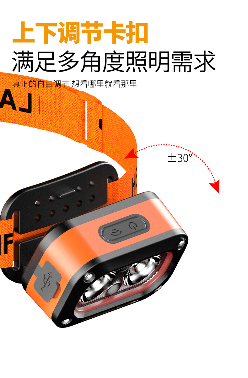 新款感应长续航LED头灯强光超亮轻便小型便携野外钓鱼可充电头灯