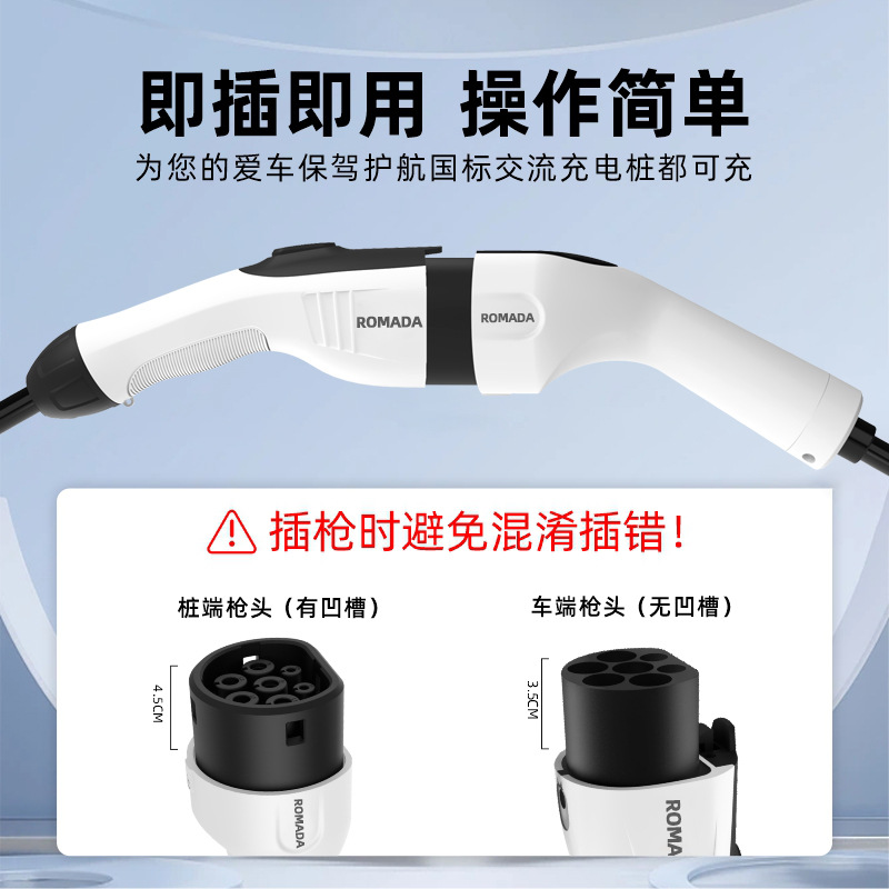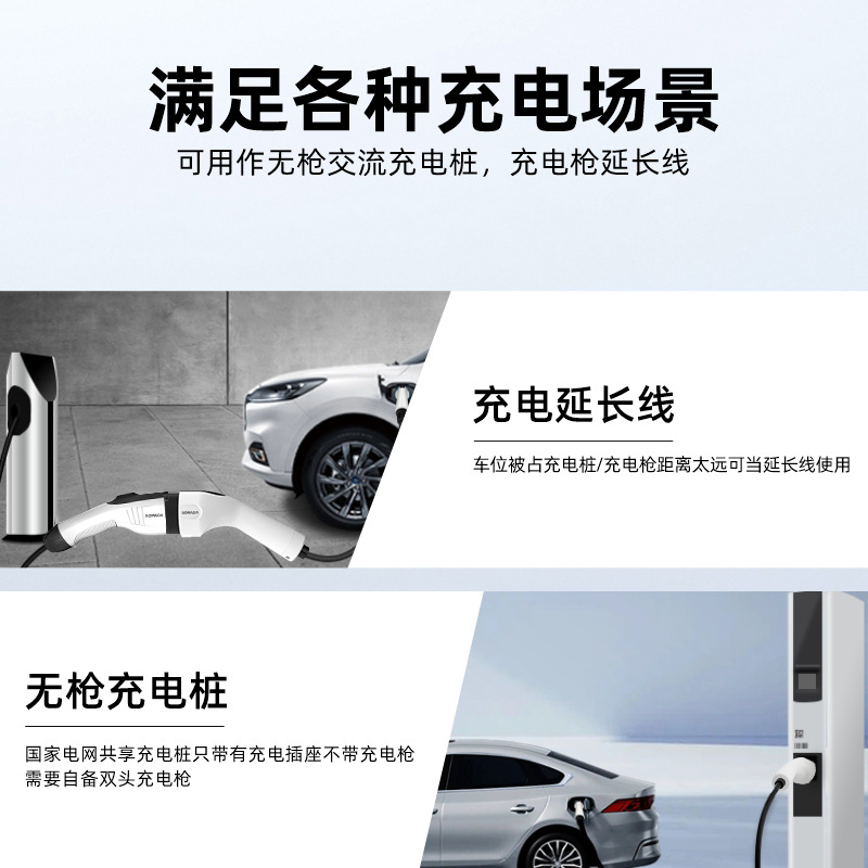 充电桩枪延长线新能源汽车16/32A7kw双头公母交流充电枪头加长线