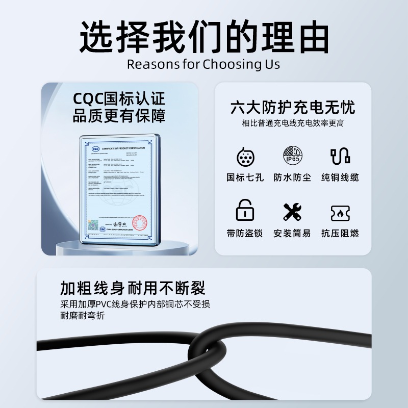 新能源充电桩枪线16A3.5KW延长线充电枪头配件32A/7KW7孔交流通用