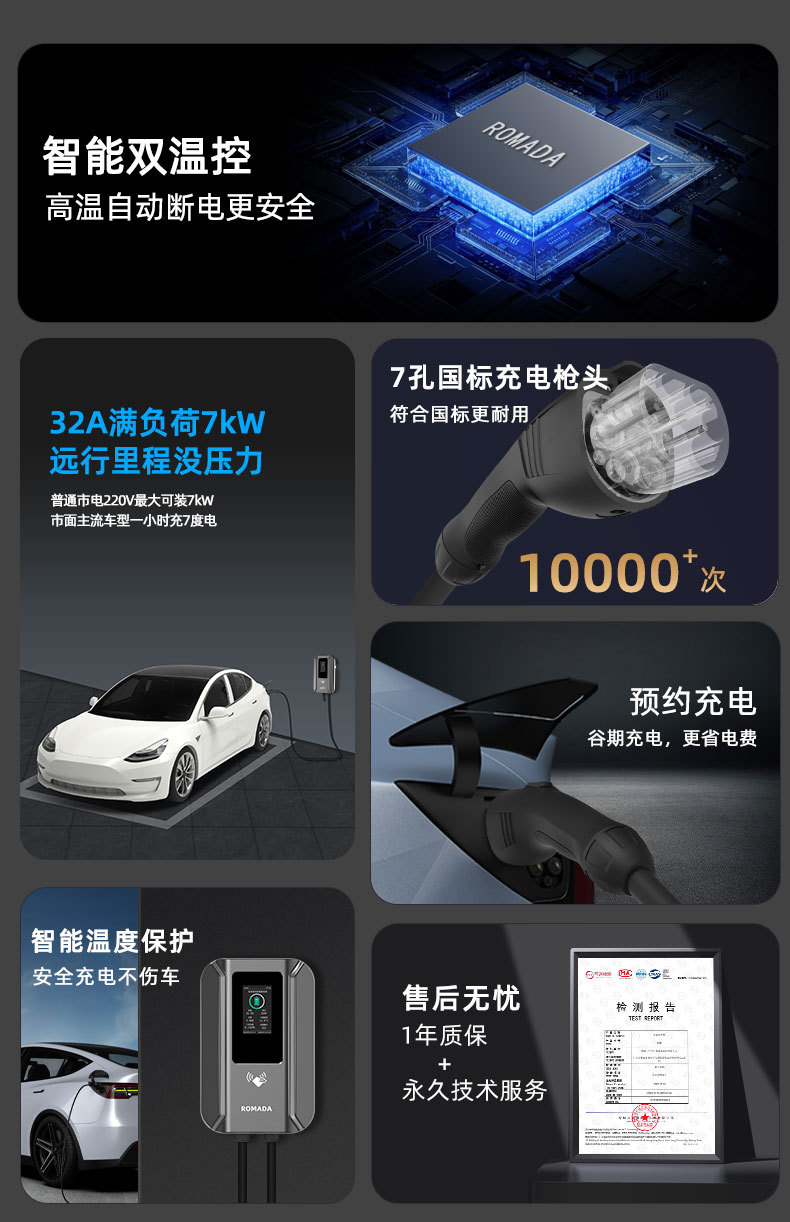ROMADA充电桩家用新能源汽车通用4G小程序APP远程交流家用慢充桩