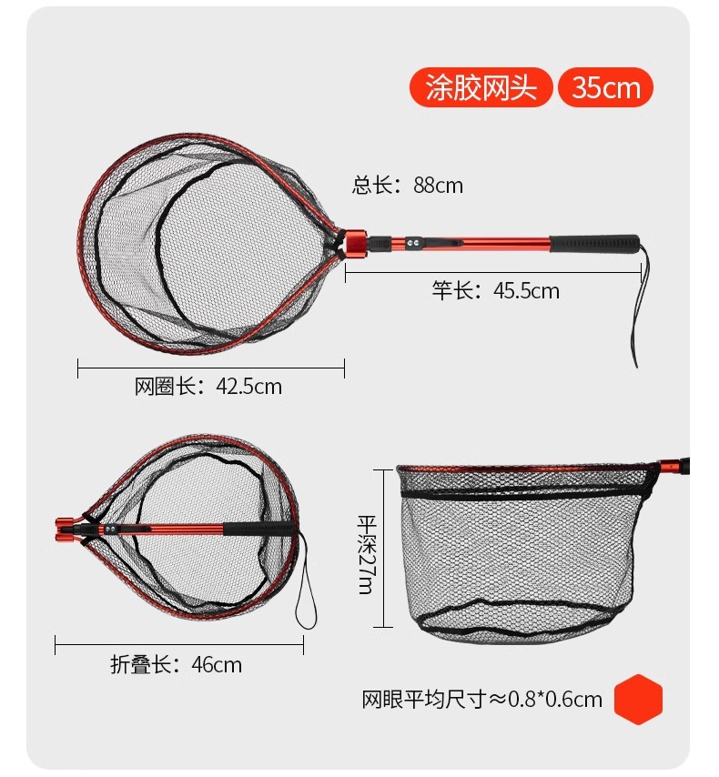 池刃路亚折叠抄网便携小抄网硅胶网头铝合金抄网杆网抄捞网