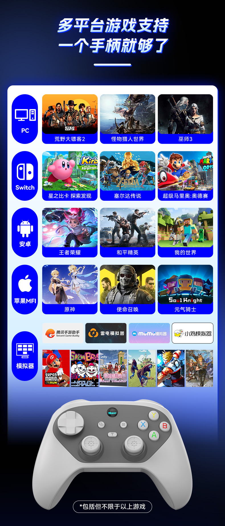 新款G6S无线游戏手柄双霍尔震动体感Switch连发PC安卓IOS蓝牙手柄