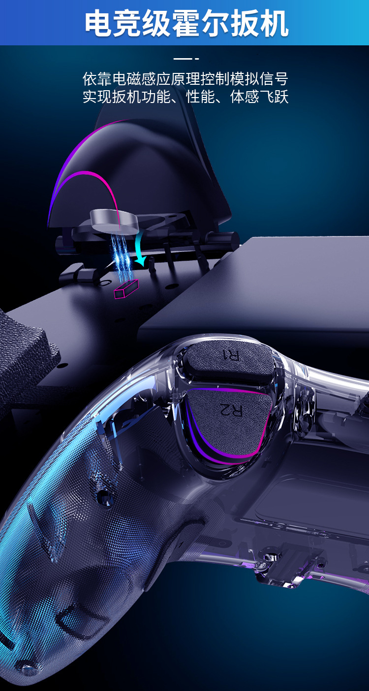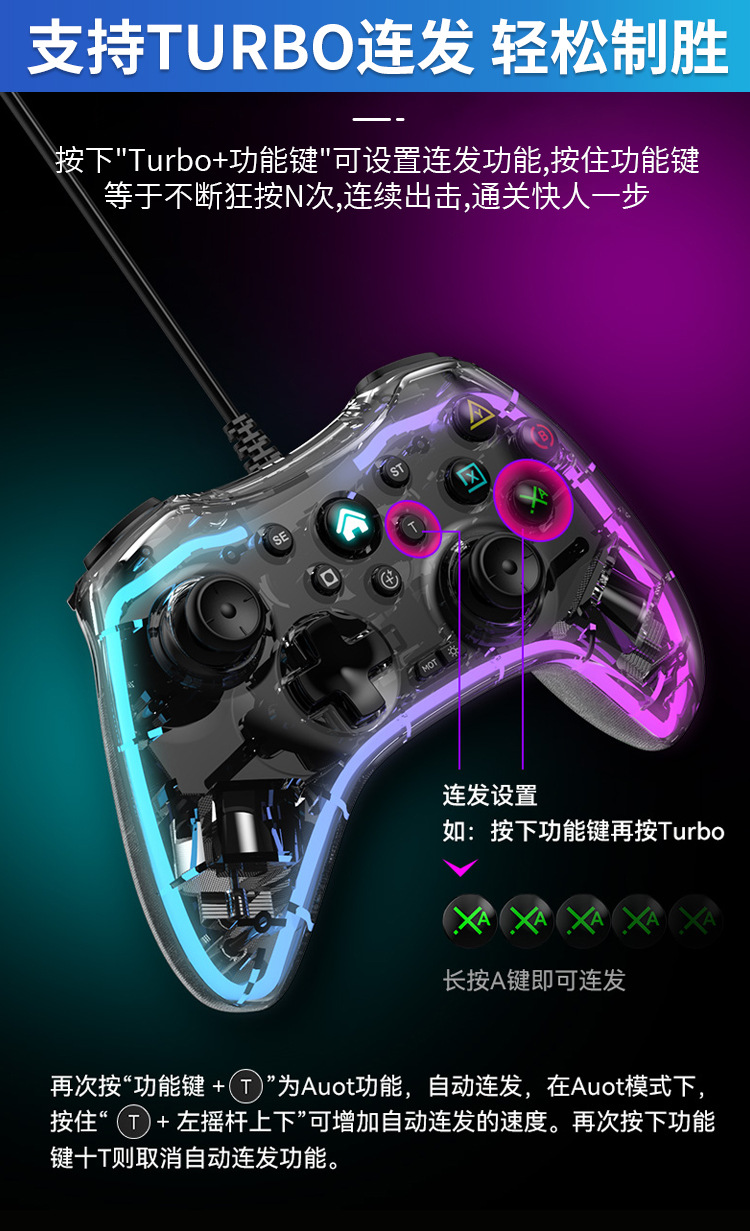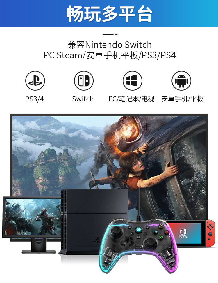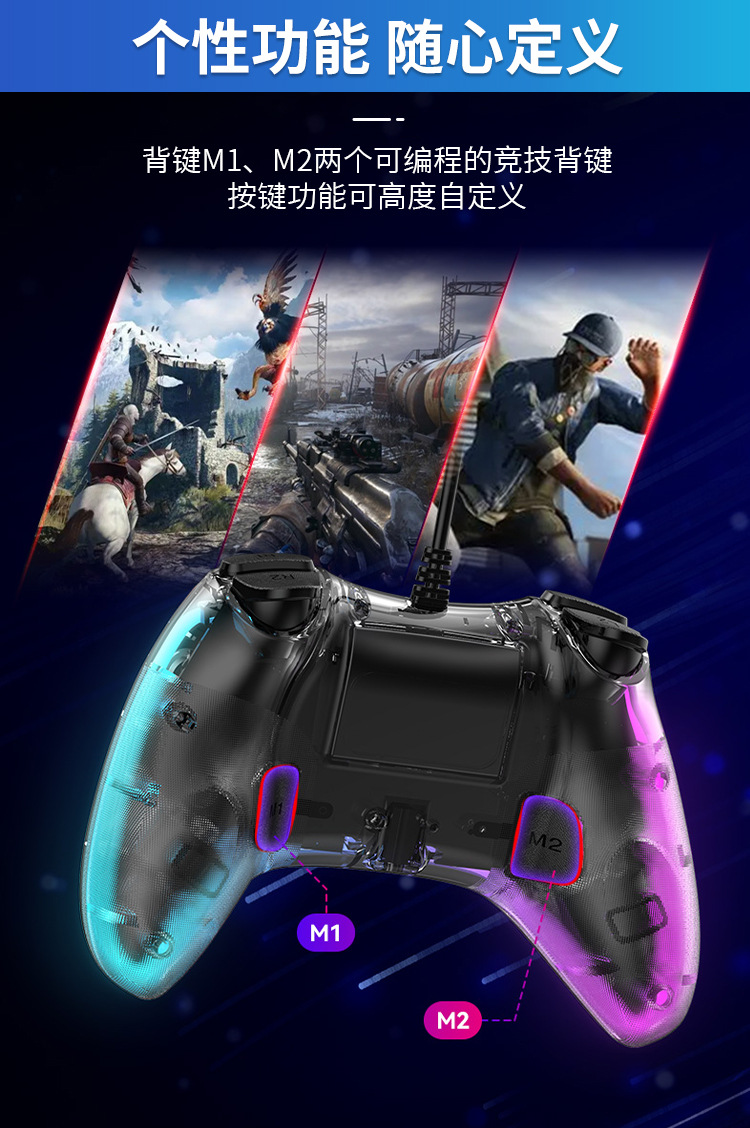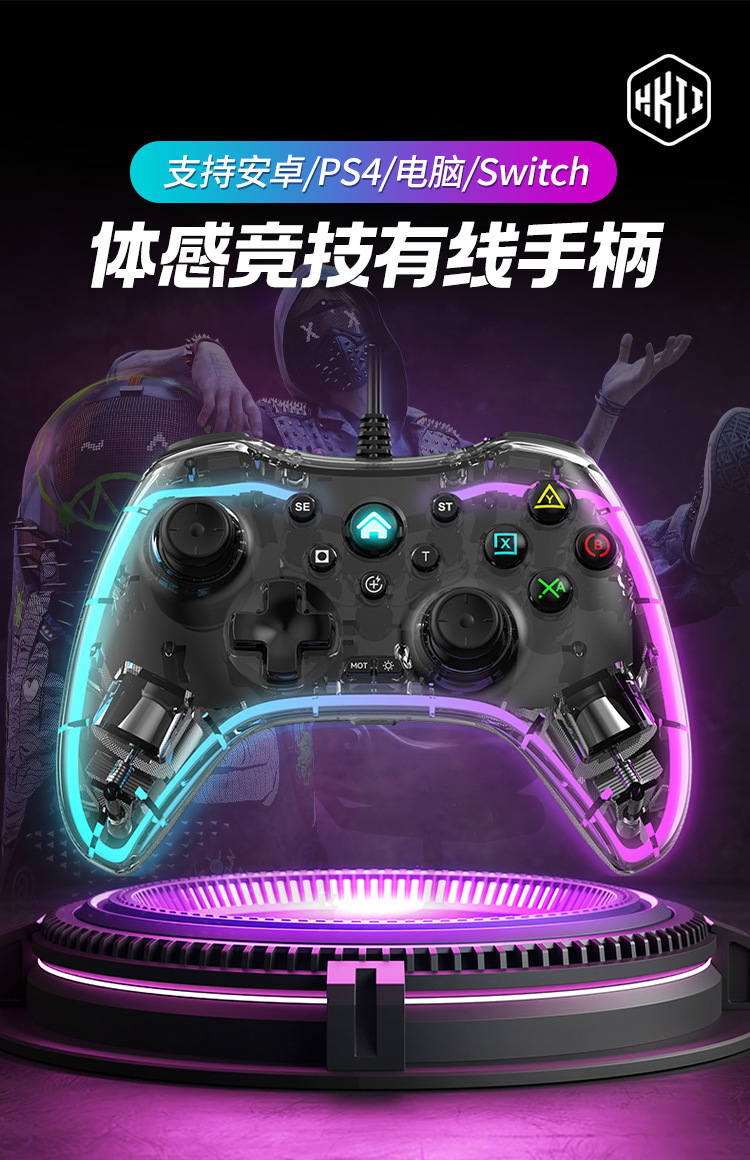 S03透明水晶炫彩游戏手柄switch有线炫光体感电脑电视PC游戏手柄
