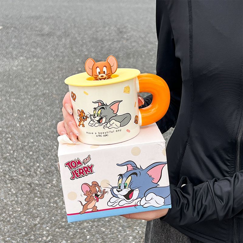 猫和老鼠正品陶瓷马克杯办公室新款水杯家用带盖牛奶咖啡杯子