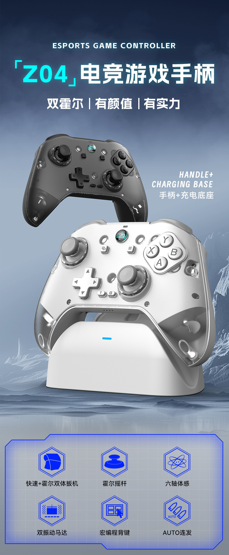 Z04无线蓝牙手柄充电底座磁吸面壳游戏手柄霍尔扳机安卓iOS电视PC