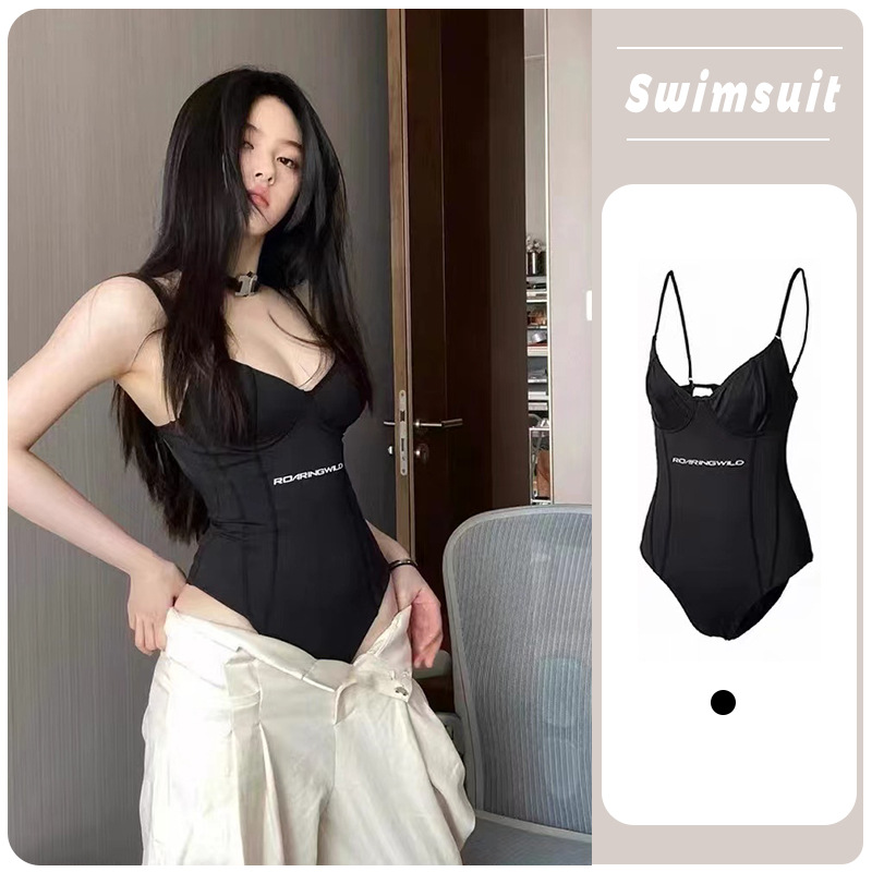 泳衣女连体吊带时尚辣妹风性感露背游泳衣显瘦泡温泉泳衣