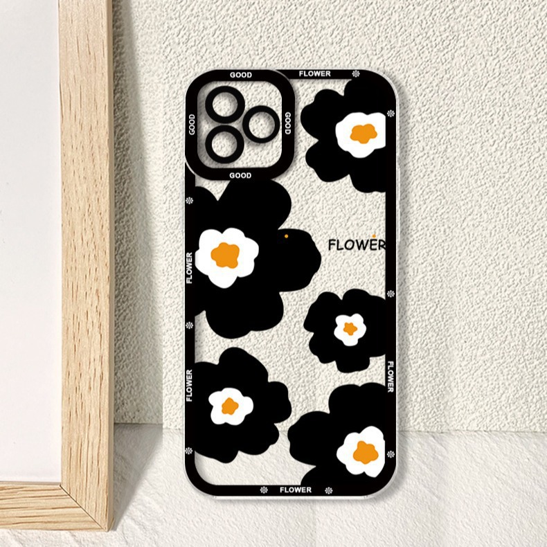爆款ins黑色花朵透明手机壳苹果15软壳ip11小众13pro