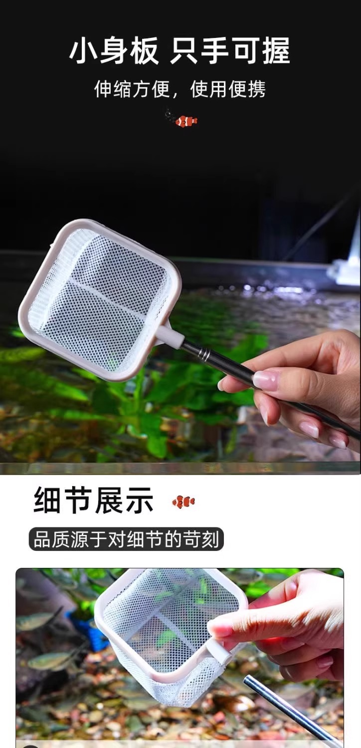 不锈钢可伸缩捞鱼网鱼缸捞小号3d渔捞抄网兜密网热带观赏鱼捞鱼网