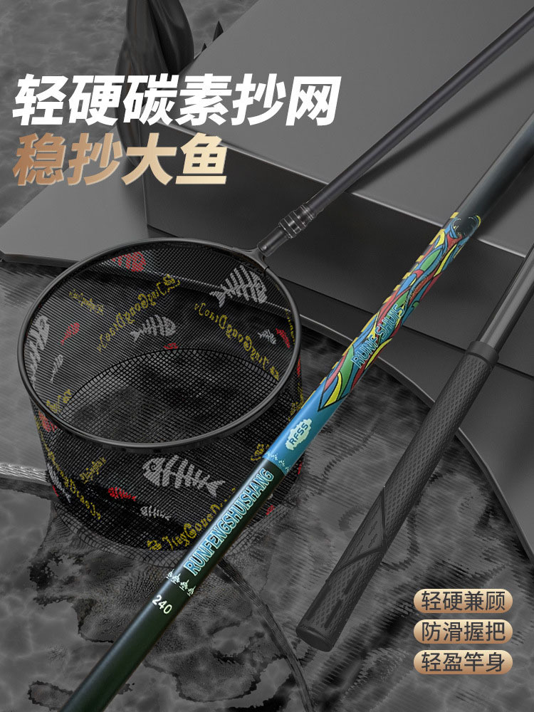 碳素抄网便携式可折叠加深网兜超轻高碳捞鱼网抄网杆伸缩杆抄