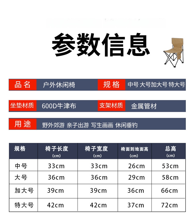户外折叠椅子钓鱼椅烧烤便携椅子露营野餐美术写生椅凳子椅子