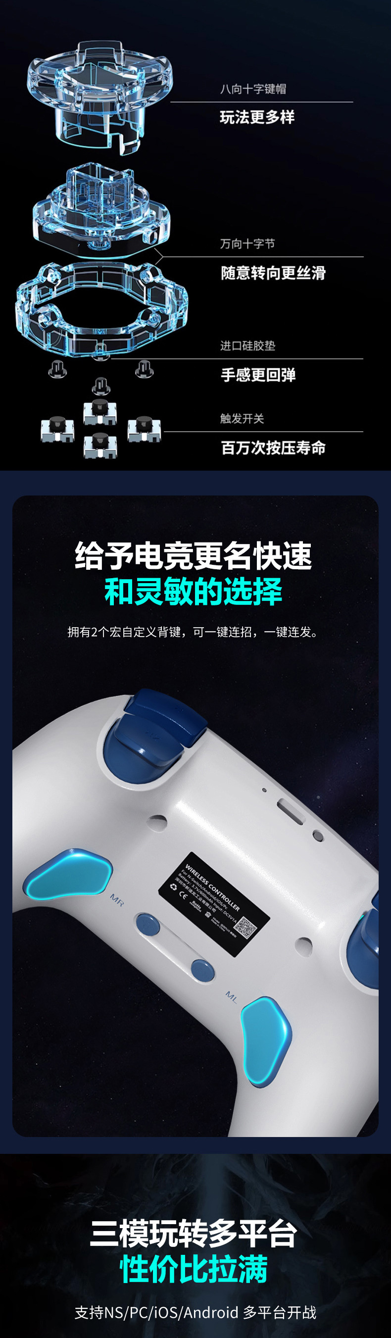 追风plus御游switch手柄适用PC安卓IOS霍尔摇杆switch蓝牙手柄