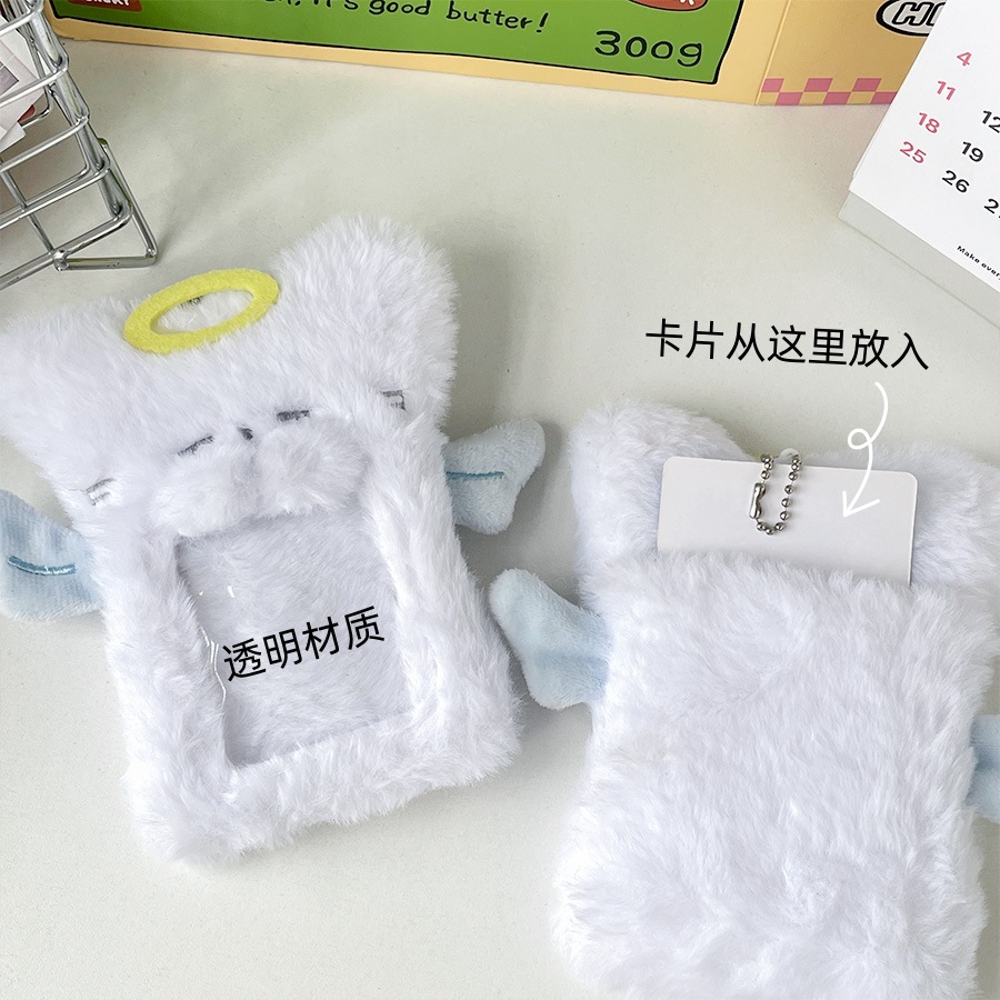 甜美风 天使毛绒卡套3寸证件卡套可爱动物校园饭卡爱豆保护套挂件