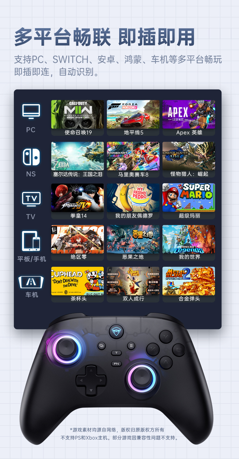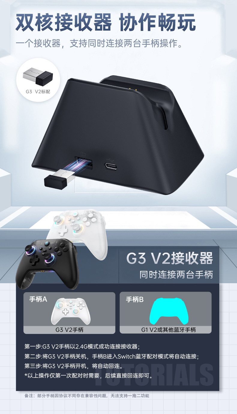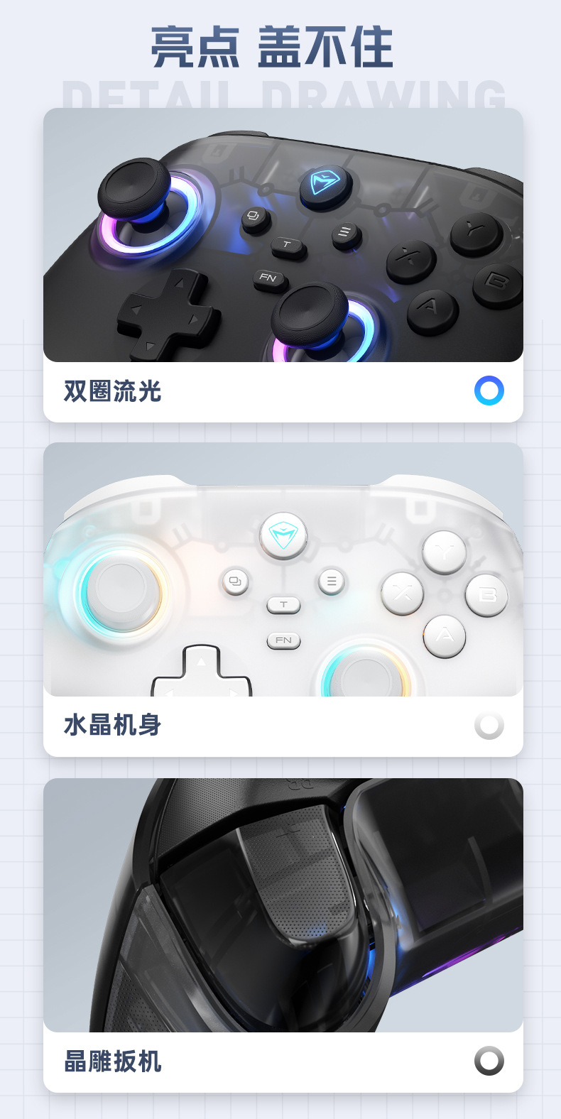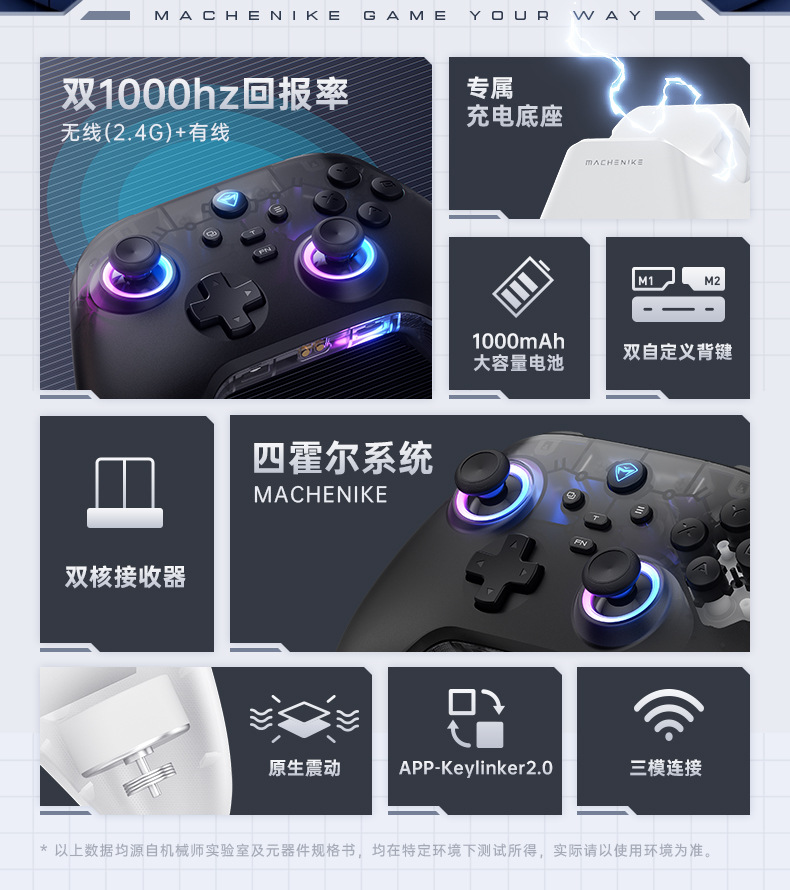 机械师MACHENIKEG3V22.4G/有线/蓝牙游戏手柄四霍尔游戏手柄