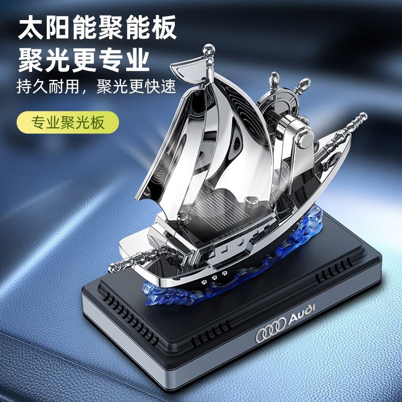 车载太阳能汽车香水香薰摆件旋转得胜号船舵车用香氛持久车内