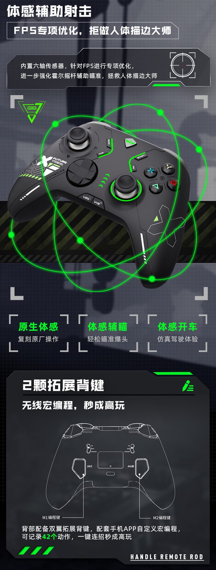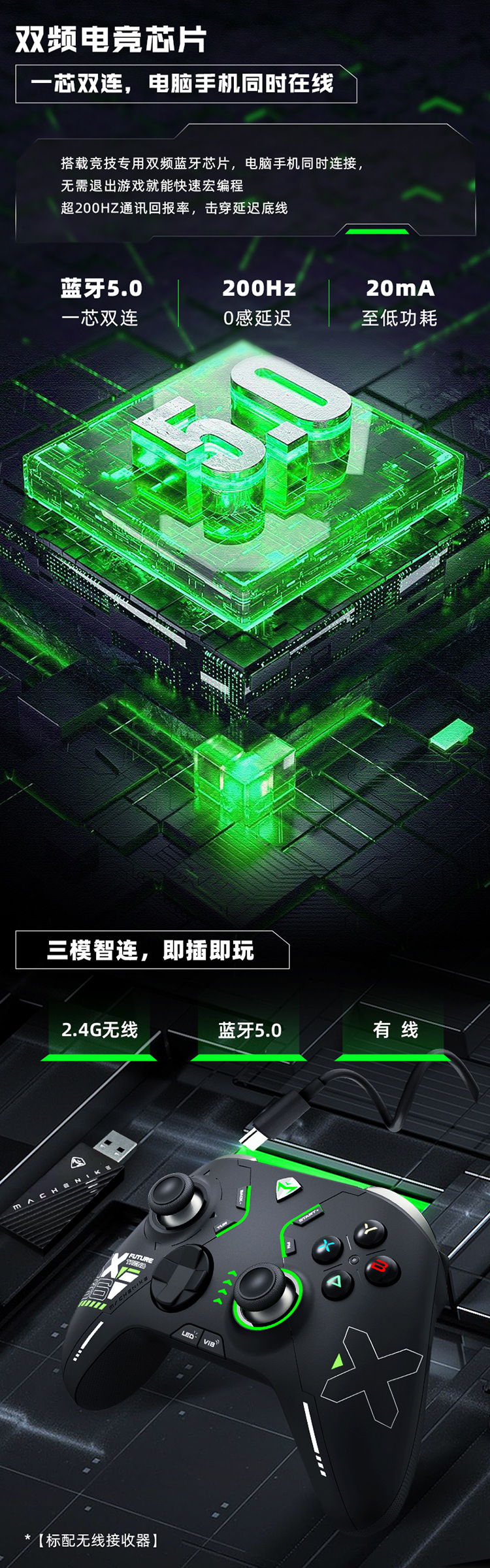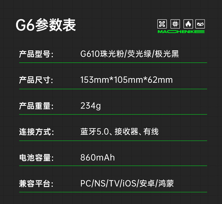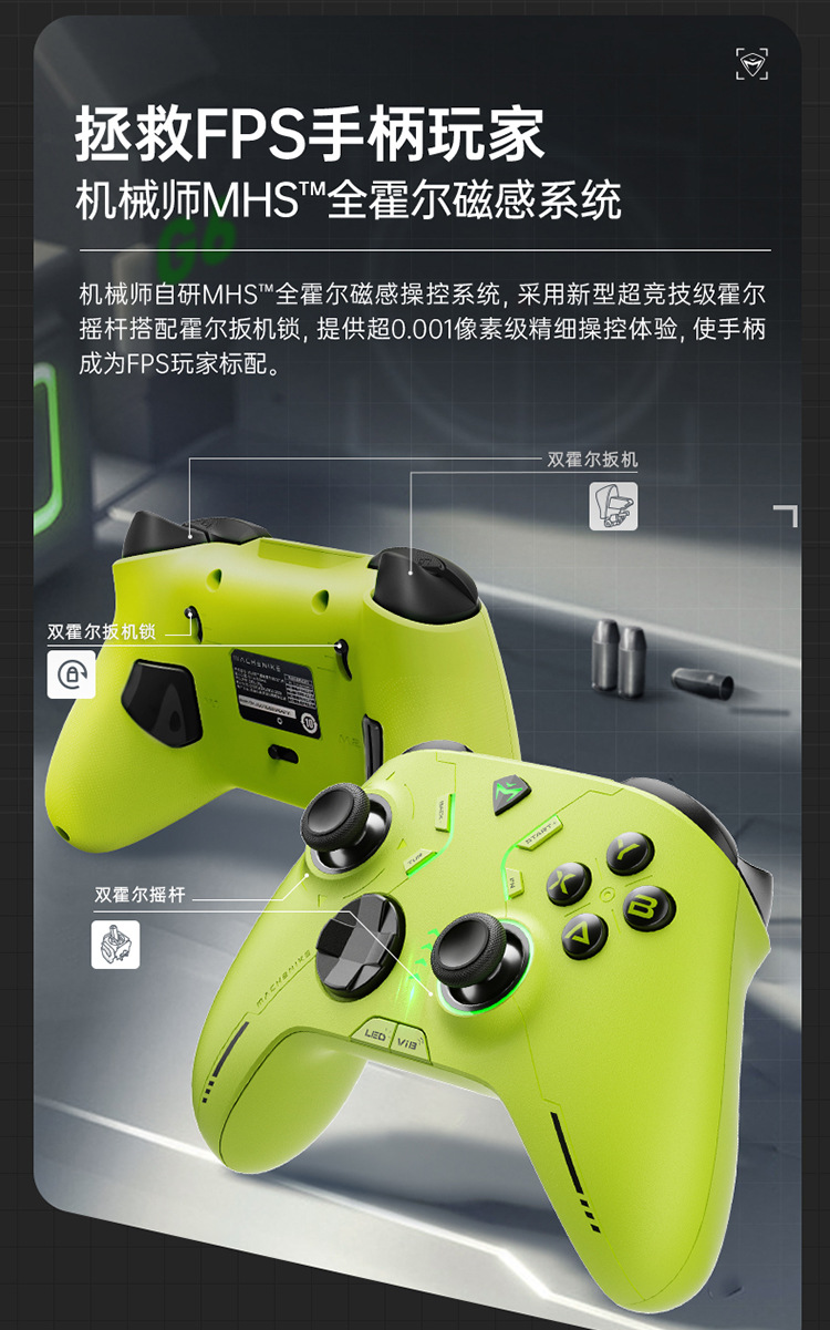 机械师三模电竞手柄G610荧光绿