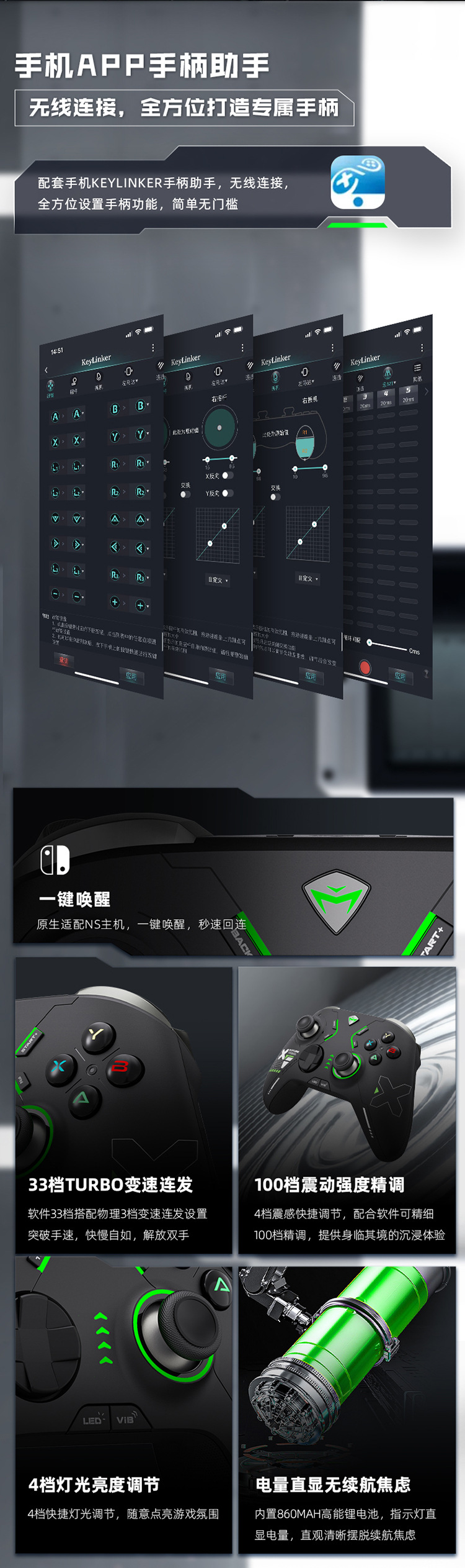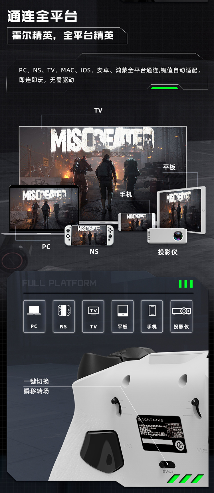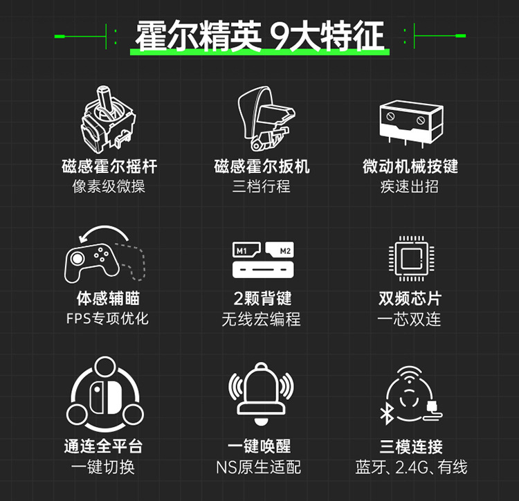机械师三模电竞手柄G610荧光绿