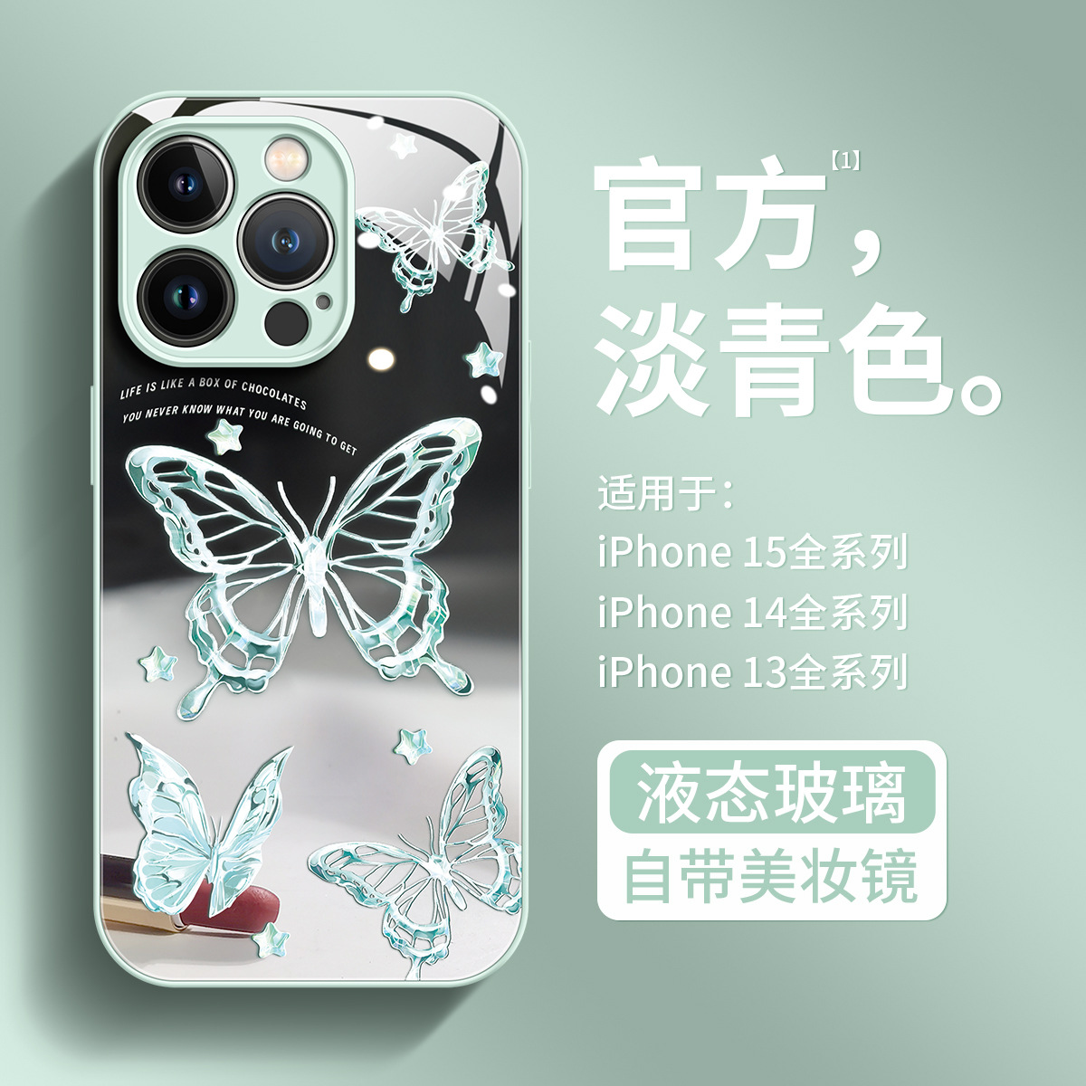 适用苹果15Promax手机壳蝴蝶新款iPhone15美妆镜面壳14Pro女生13