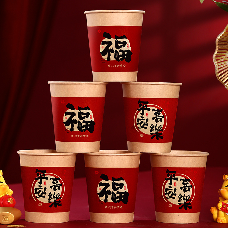 新年春节蛇年2025通用纸杯一次性杯子过年新款加厚喜庆家用水杯