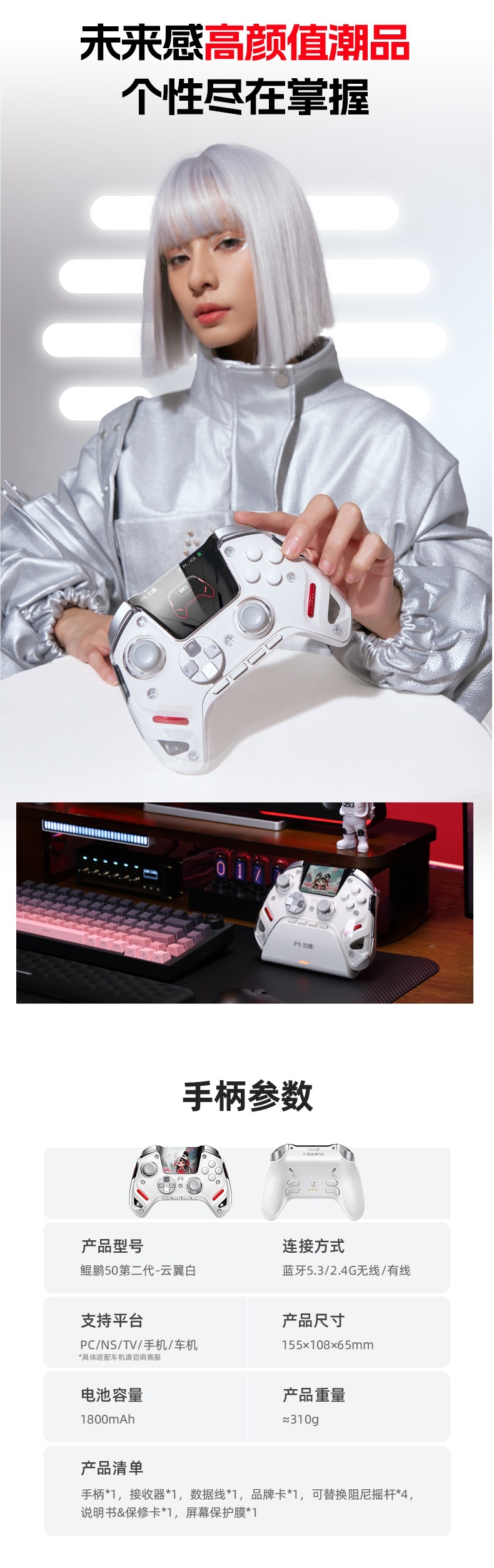 【鲲鹏50第二代-云翼白】+【无线底座+手柄包】