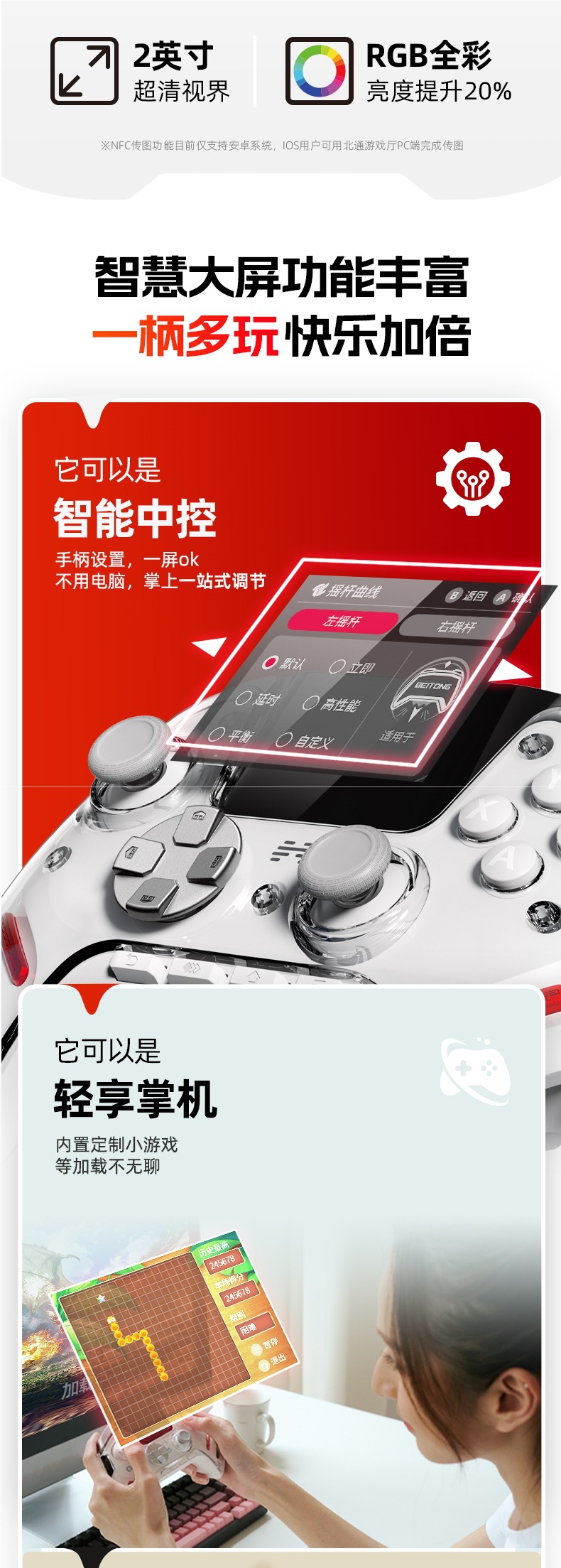 鲲鹏50第二代大屏智能游戏手柄适配switch2手柄xboxpc电脑版