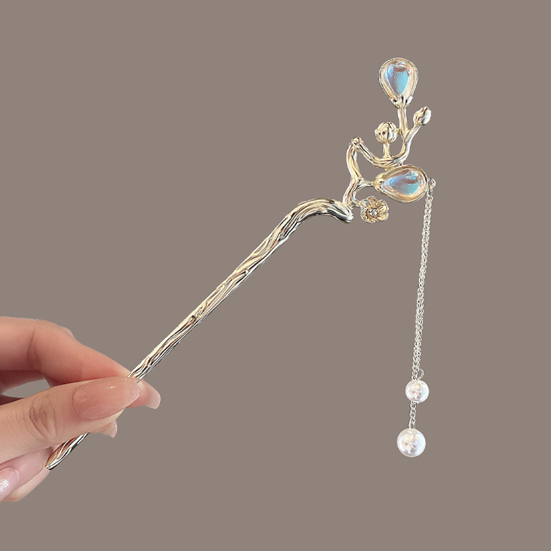 新中式发饰女星空月光石发簪高级感头饰中性简约发钗个性盘发簪子