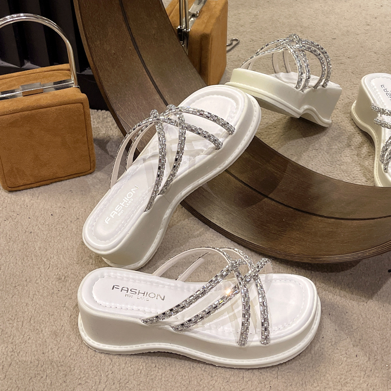 厚底凉拖鞋女夏外穿时尚松糕底新款水钻凉拖鞋增高厚底一字拖