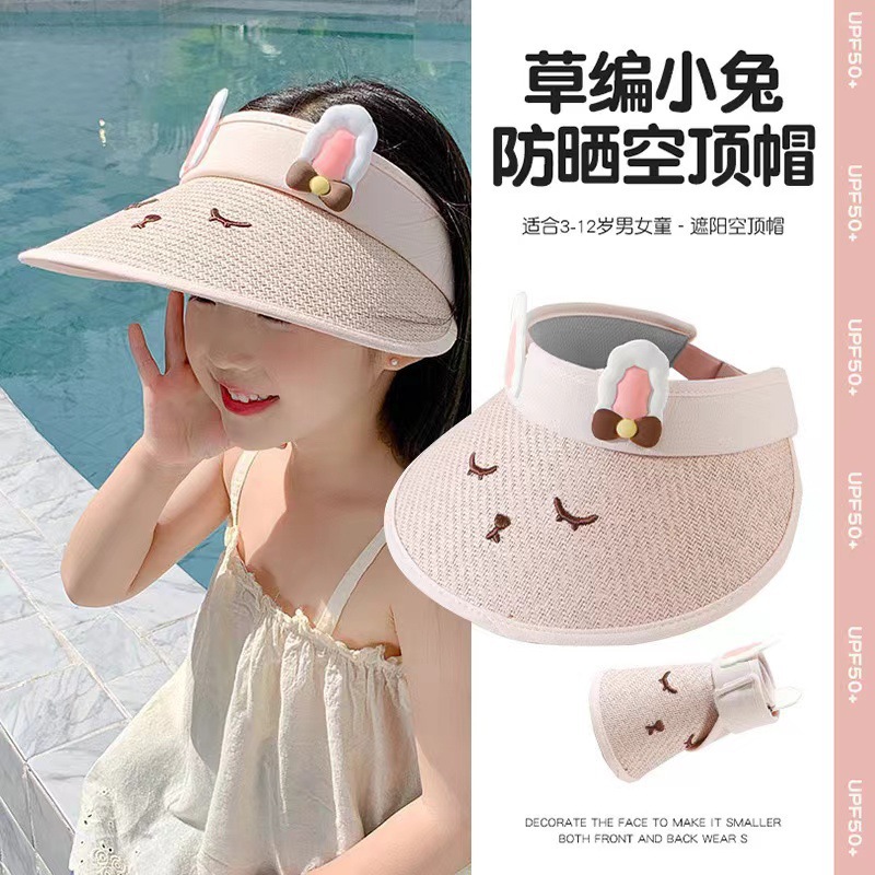 可爱时尚儿童帽卡通遮阳帽夏季防晒太阳帽甜美宝宝新款空顶绣花帽
