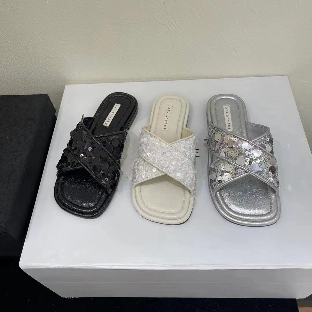 亮片交叉带拖鞋新款外穿平底孕妇鞋休闲度假沙滩凉拖鞋女夏季