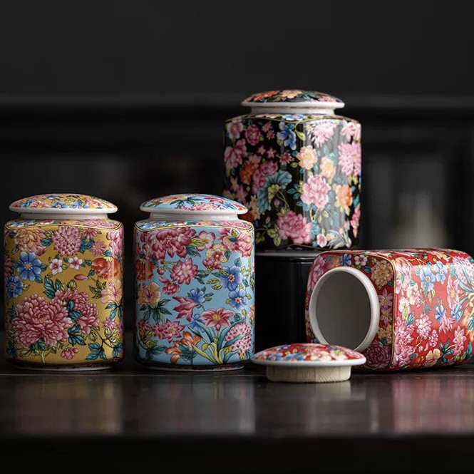 茶叶罐高颜值轻奢陶瓷高档珐琅彩摆件储物罐密封罐便携存储罐茶仓