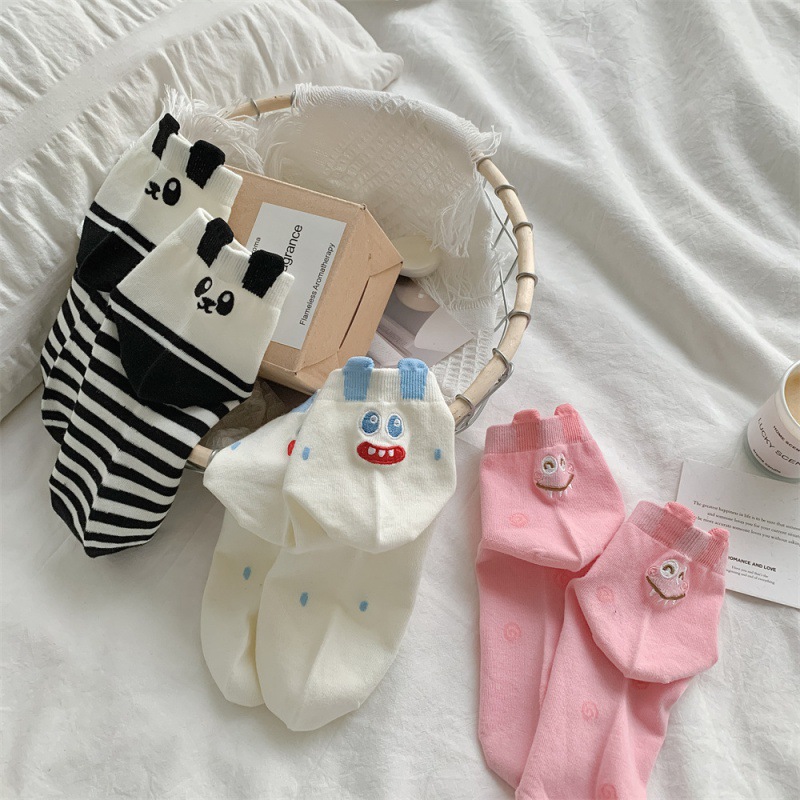 韩国风东大门卡通女袜春夏可爱风后跟小动物透气网眼女士船袜短袜